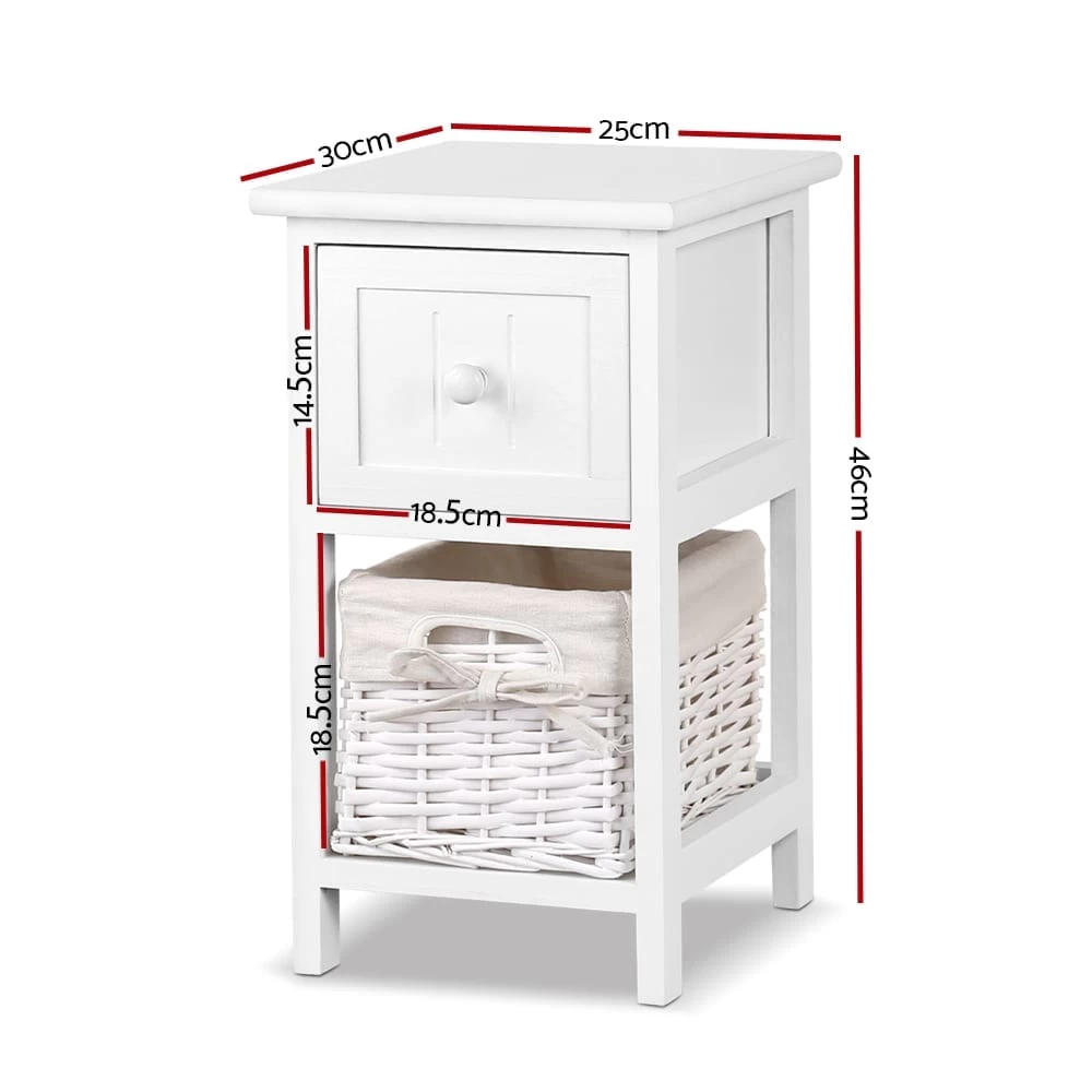 A rustic and cottage feel with practical aesthetics. That is what our Claire Bedside Table stands for. With a country-style design and a delightful wicker basket as added storage, the bedside table is charming and appealing in every way. Made of Paulownia wood, the frame is strong and sturdy and the MDF and plywood drawer offers deep storage space with smooth movements for a hassle-free use. The wicker basket has a removable linen covering that can be easily cleaned. Perfect for use in any room setting, the Claire bedside table is matches any decor with its white and pleasant hues.