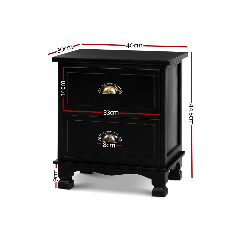With its charming retro appeal and curved accents, our Artiss Clove Bedside Table exudes timeless elegance all over. The two deep drawers with vintage metal handles provide ample space for all your beside essentials so that everything is close at hand, and also come with drawer stoppers. Crafted from solid Paulownia wood and MDF board, the bedside table is stable and durable. It features round corners for safe use and anti-scratch feet pads to keep floors and surfaces pristine even with robust use. The classic design and clean neutral tone mean that the bedside table will suit any bedroom. Or any room for that matter, such as the living room or the study. Best of all, the bedside table comes fully assembled so that you can start using it straight away.