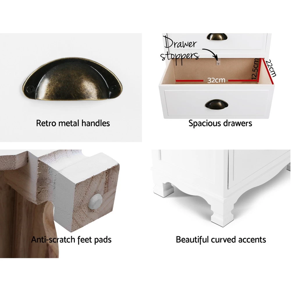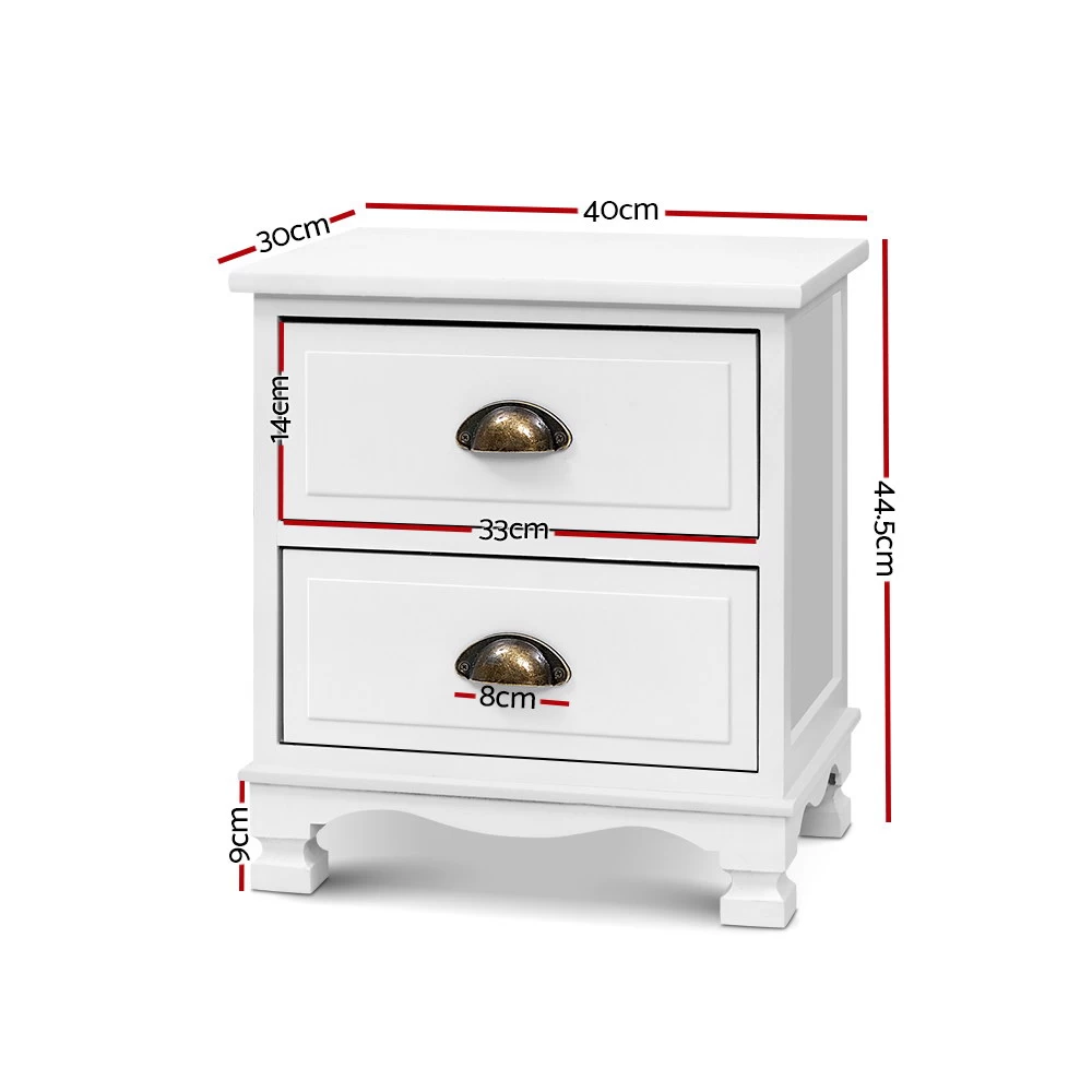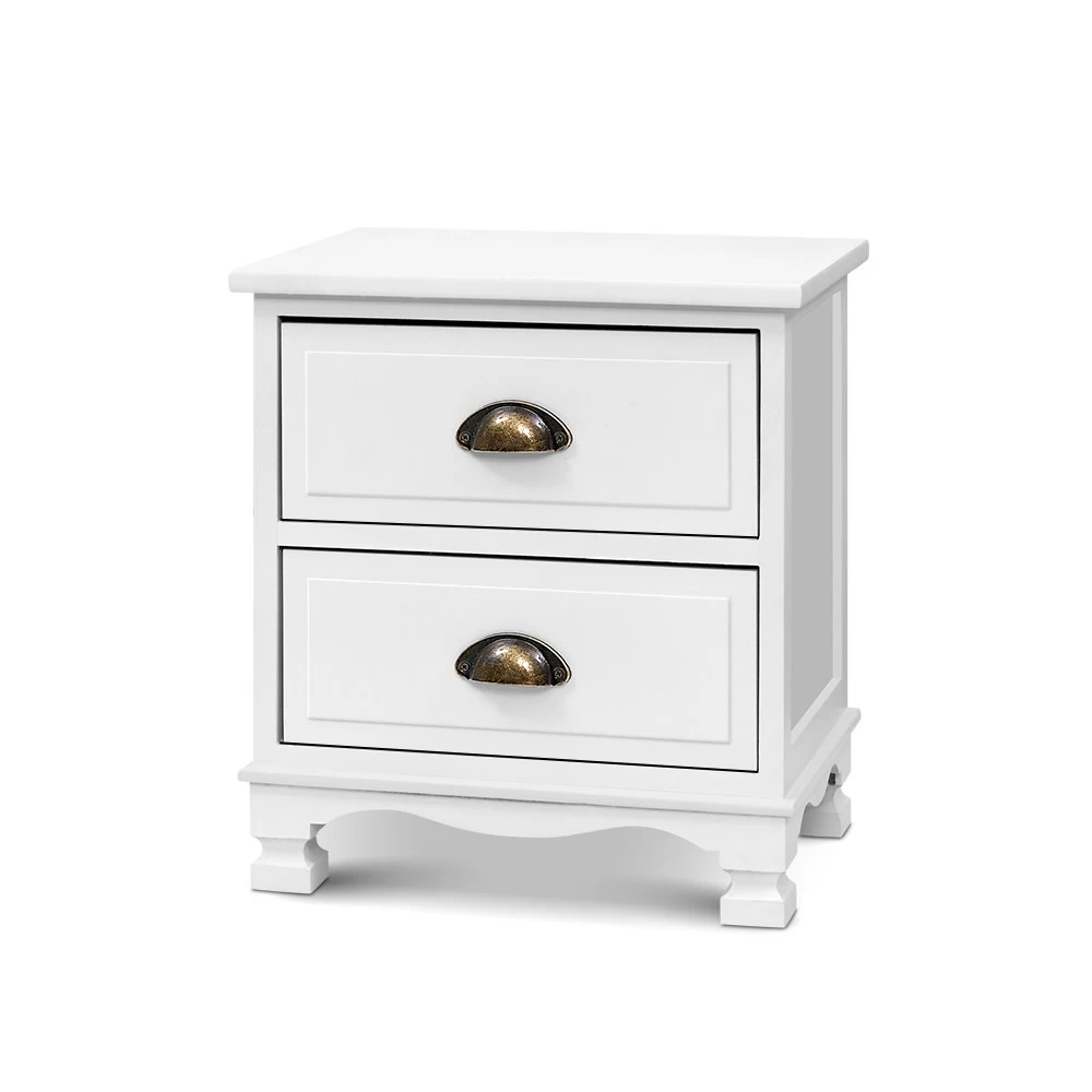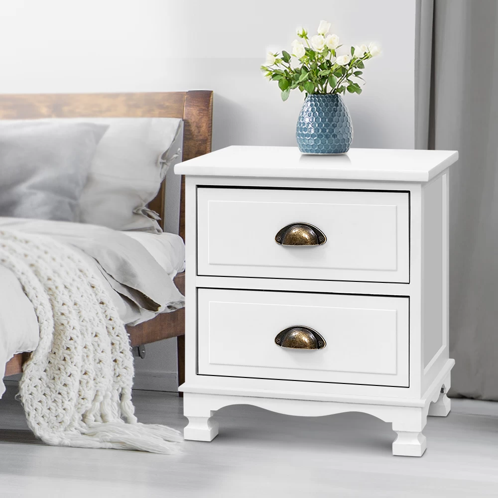 With its charming retro appeal and curved accents, our Artiss Clove Bedside Table exudes timeless elegance all over. The two deep drawers with vintage metal handles provide ample space for all your beside essentials so that everything is close at hand, and also come with drawer stoppers. Crafted from solid Paulownia wood and MDF board, the bedside table is stable and durable. It features round corners for safe use and anti-scratch feet pads to keep floors and surfaces pristine even with robust use. The classic design and clean neutral tone mean that the bedside table will suit any bedroom. Or any room for that matter, such as the living room or the study. Best of all, the bedside table comes fully assembled so that you can start using it straight away.