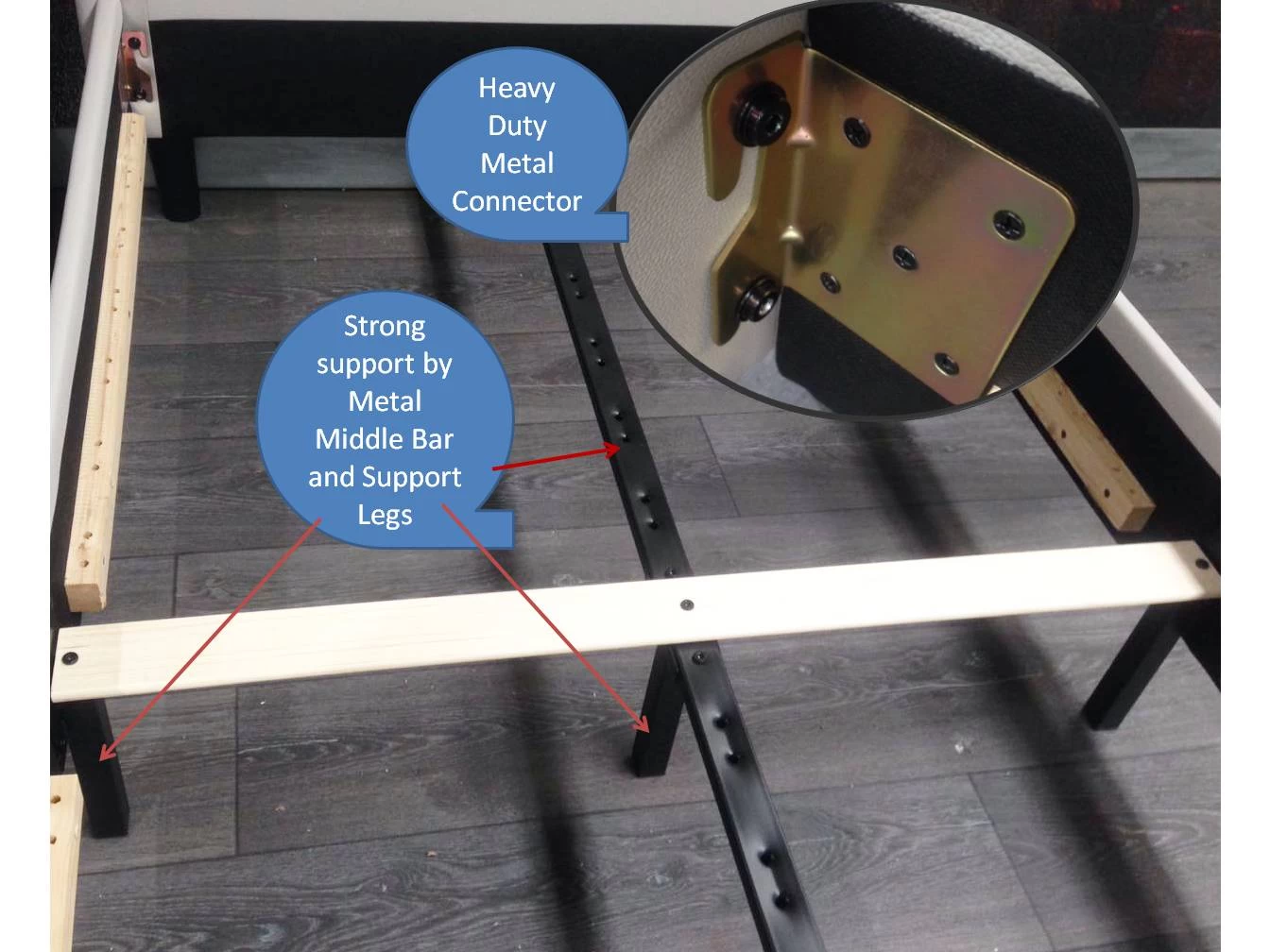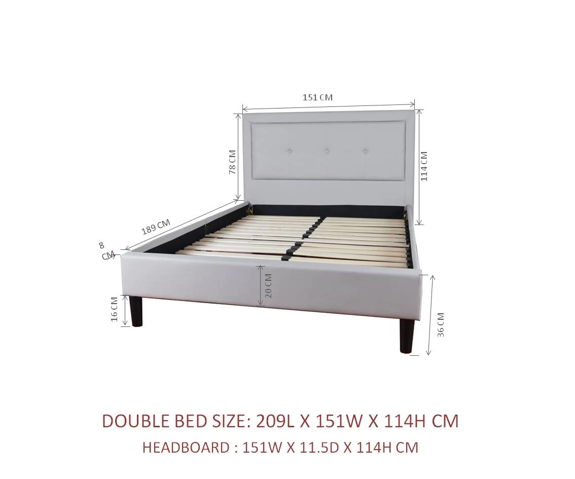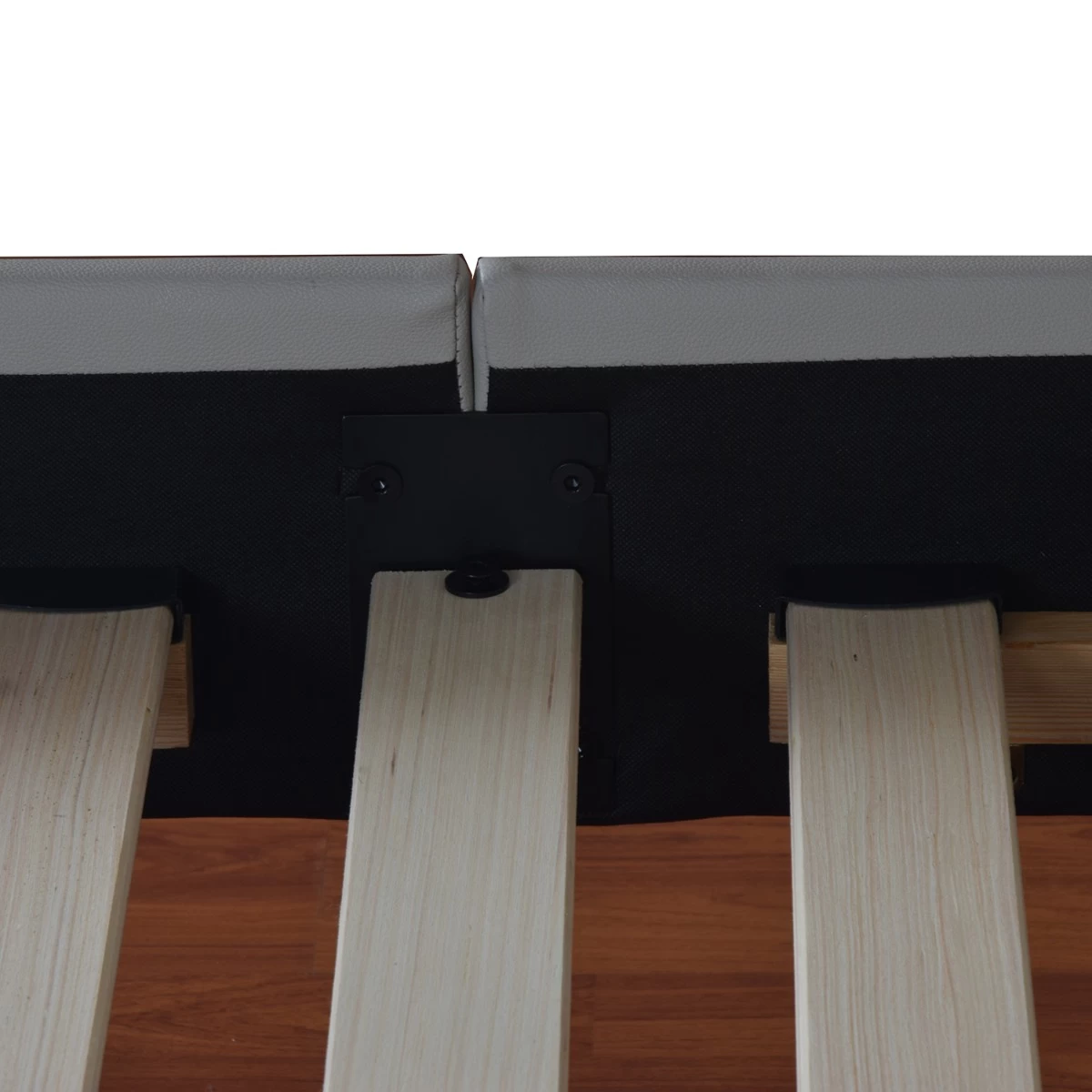 Grey PU Upholstered Bedframe, Size: 209 x 151 x114 cm, Metal Legs and Middle Support Bar, Heavy Duty Metal Connector, Wooden Slats