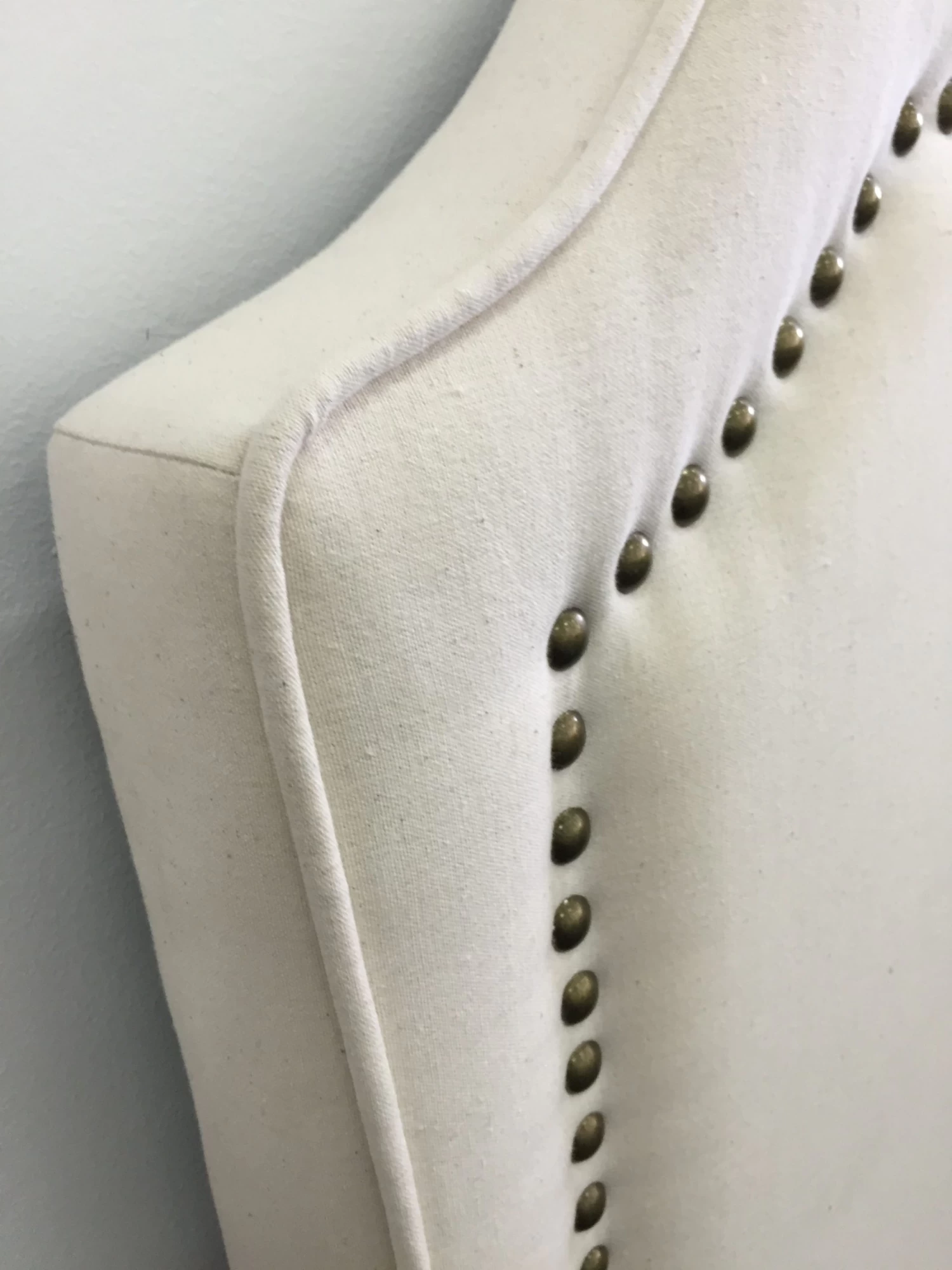 The headboard is finely decorated with Queen Anne Curve Designand fashionable nail button trim. It provides a backrest for the persons who want to sit up and read. Accented by numerous buttons in a tufted fashion, this headboard would evoke a sense of grace and elegance.