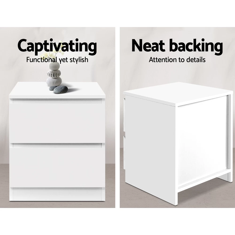 A useful bedside addition, the Artiss Pepe Bedside Table is elegant and simple with a lasting appeal. Made of 15mm thick particle board, the bedside table is sturdy and durable in every way. Two deep drawers sliding on smooth anti-rust runners provide ample storage space. Better still, the handle-free design gives it a modern vibe that stands out from the mundane. Not least, the finish is impeccable and easy to maintain and clean.