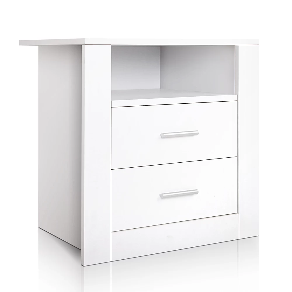 The bedside table is constructed with melamine material for anti scratch protection