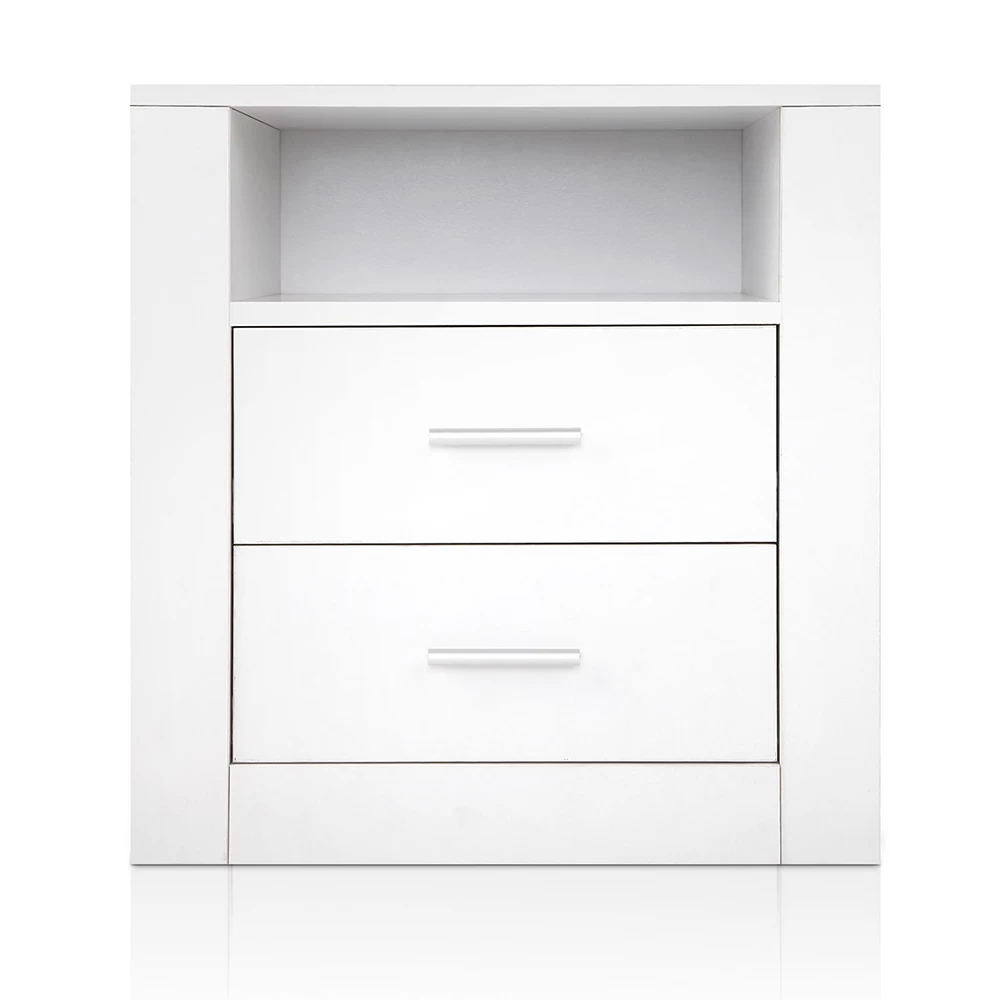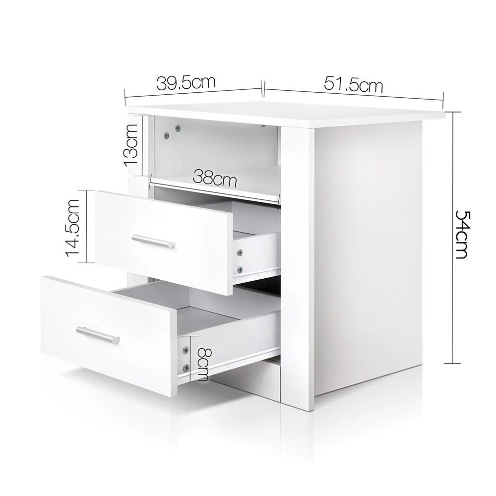 Retro Bedside Table with Drawers White