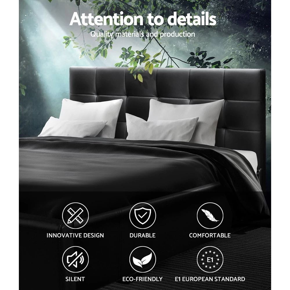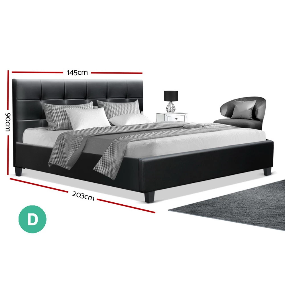 Turn your bedroom into a luxurious pad with our Soho Bed Frame. Constructed with a sturdy steel frame reinforced with metal bars and heavy-duty connectors, the bed frame is also padded with high density foam and upholstered in PVC Leather for a soft and comfortable touch. The bed frame features a wooden arched slatted base that helps to distribute weight evenly across the frame and a centre support strut to provide added stability to the overall structure. Of particular interest too is the tufted headboard that really gives the bed frame a designer-class status. Simply oozing with elegance and sophistication in every detail.