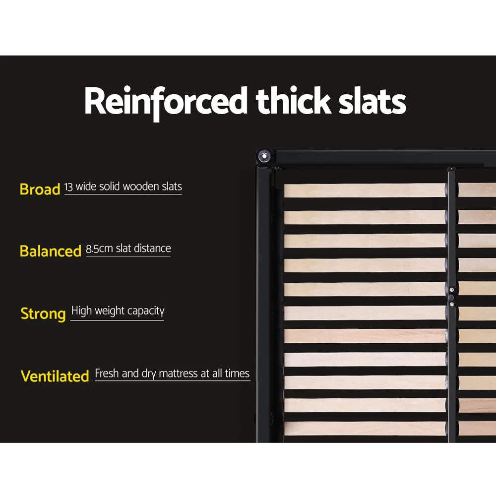 Constructed with a sturdy steel frame that’s reinforced with metal bars and heavy-duty connectors, the Mila Bed Frame is also padded with high density foam and upholstered in breathable non-woven premium linen fabric for a soft and comfortable touch. The Bed Frame features a wooden arched slat base that helps to distribute weight evenly across the frame and a centre support strut to provide added stability to the overall structure.