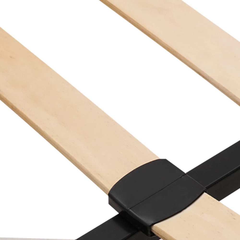 Simple in design, our Metal Bed Frame is constructed in sturdy steel for durability and strength. Across the frame, wooden Bentwood slats provide good weight distribution as well as ensuring that the mattress stays in place. Underneath, central support beams further steady the bed under robust use.