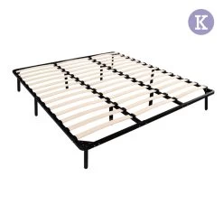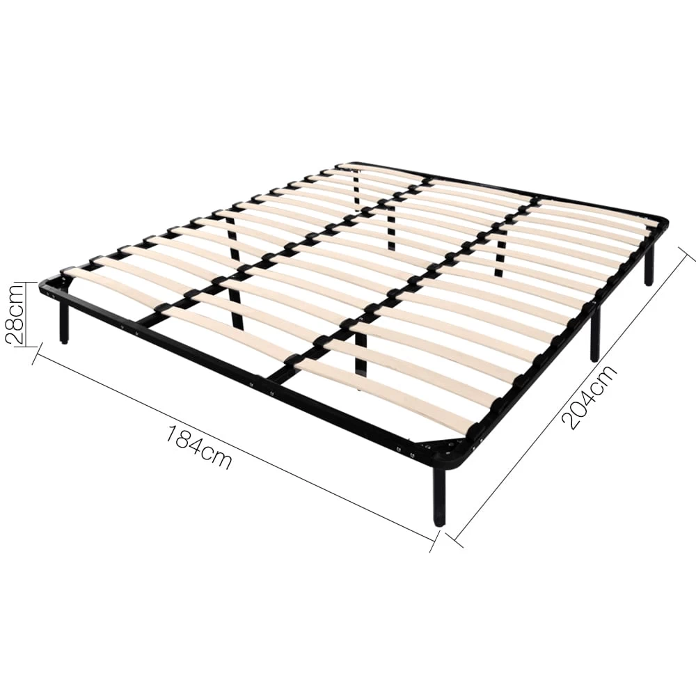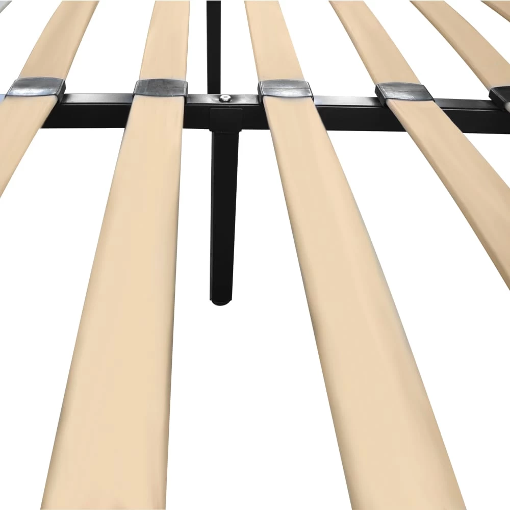 The bed frame is constructed from sturdy steel for durability with wooden slats to provide