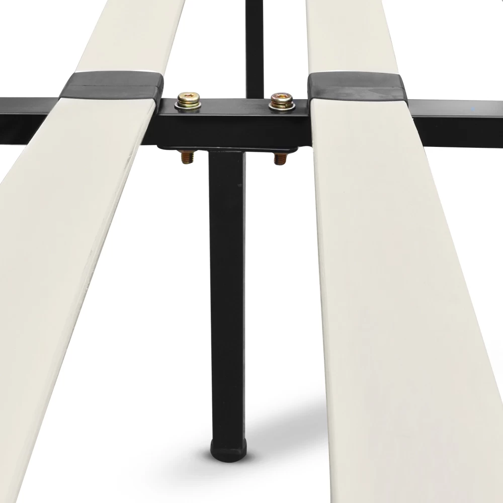 the bed frame is constructured with a sturdy steel frame using reinforced steel bars
