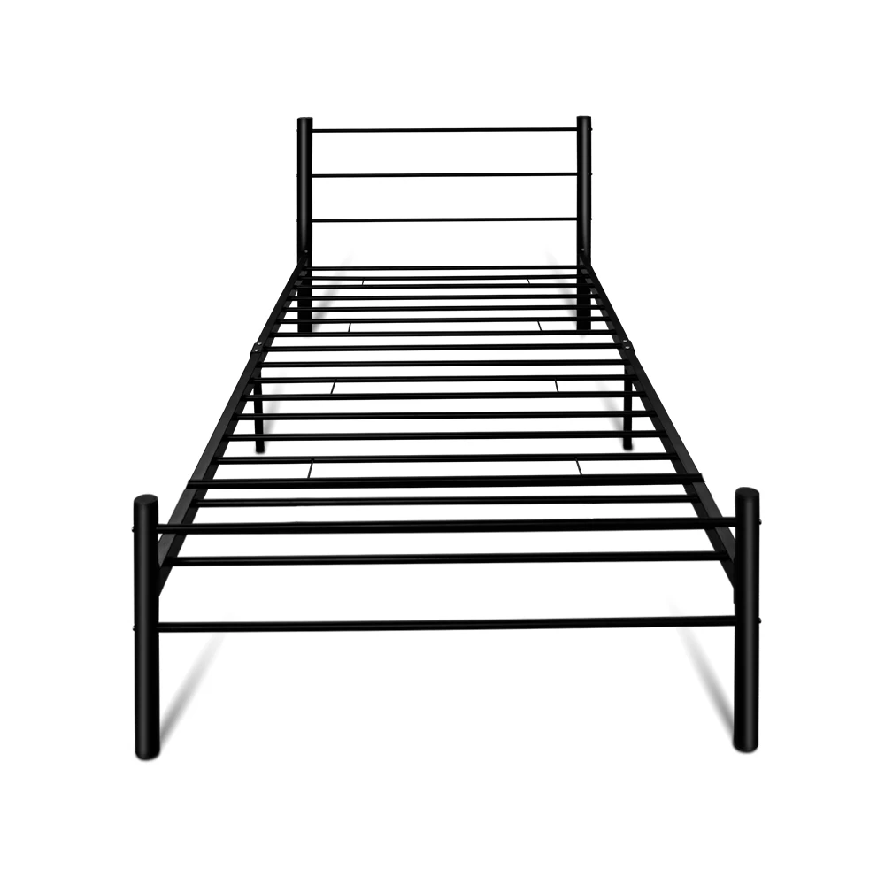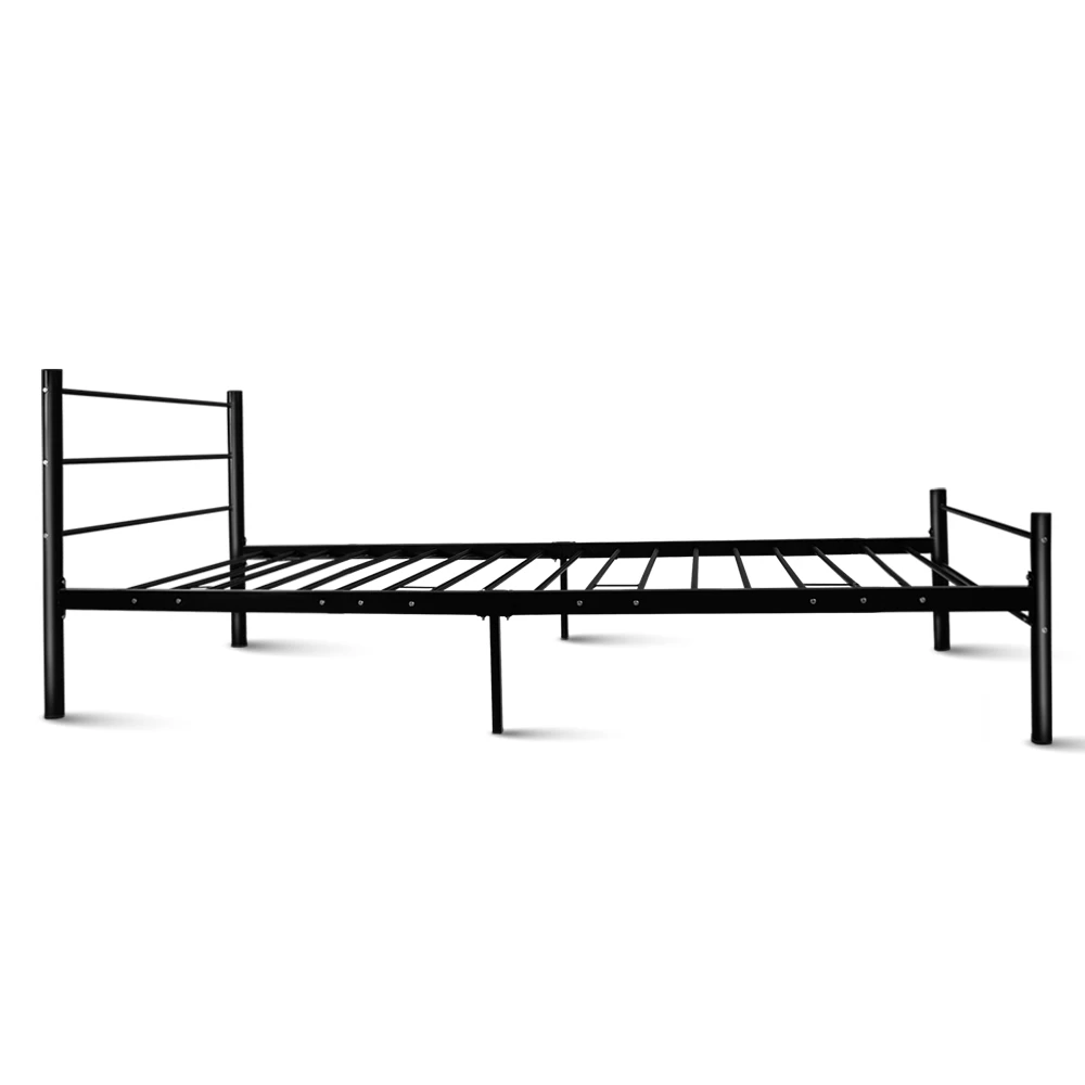 Simple in design, our Metal Bed Frame is constructed in sturdy steel for durability and strength. The modernistic headboard and tailboard feature a matte black slat-design that is both timeless and practical. And the rust-resistant black powder-coated finish lends a sophisticated yet neutral look that will go well with any room decor.
