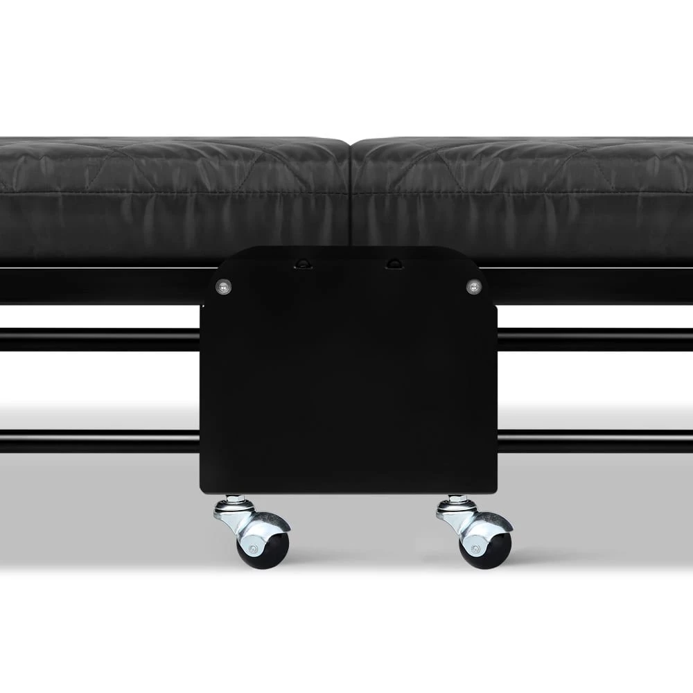 Scrambling for a spare bed when friends and relos sleepover? Or you need one for a camping or outdoor trip? Look no further than our Folding Bed. With a 4.8cm thick mattress of high density foam set on a durable powder-coated metal frame, our folding bed is as comfortable as it is practical. More so with its unfolded length of 1.95m, five adjustable headrest positions and a weight capacity of up to 110kg. That means anyone six feet tall and of a fairly heavy set can still get a relatively good night’s rest on our portable single bed. Plus, the solid constructed base helps to ensure a steady structure, even with the most robust sleeping manoeurves. And when it’s done, just fold, latch it and cart it away on its four castor wheels (two with brakes) for storage until the next use.