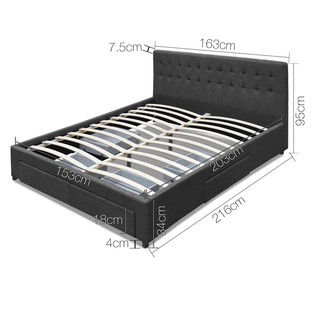 Fabric Bed Frame with Storage Drawers Dark Grey