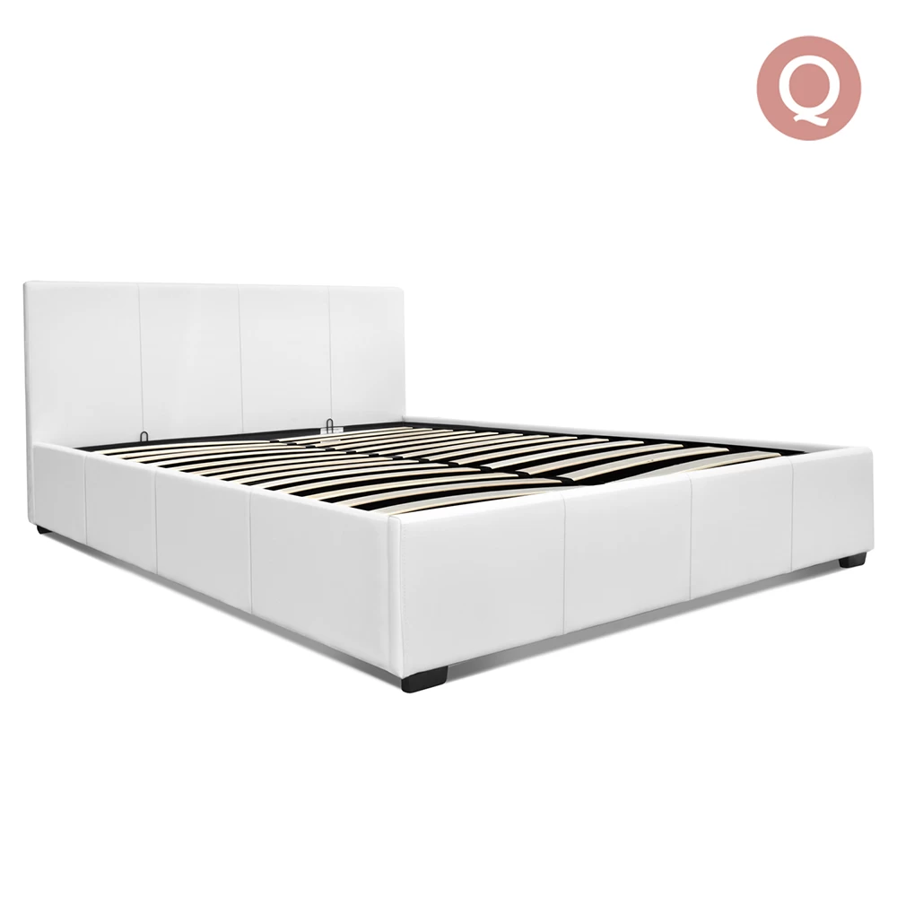 arched slat base the bed frame is covered with PU leather. With the easy gas lift