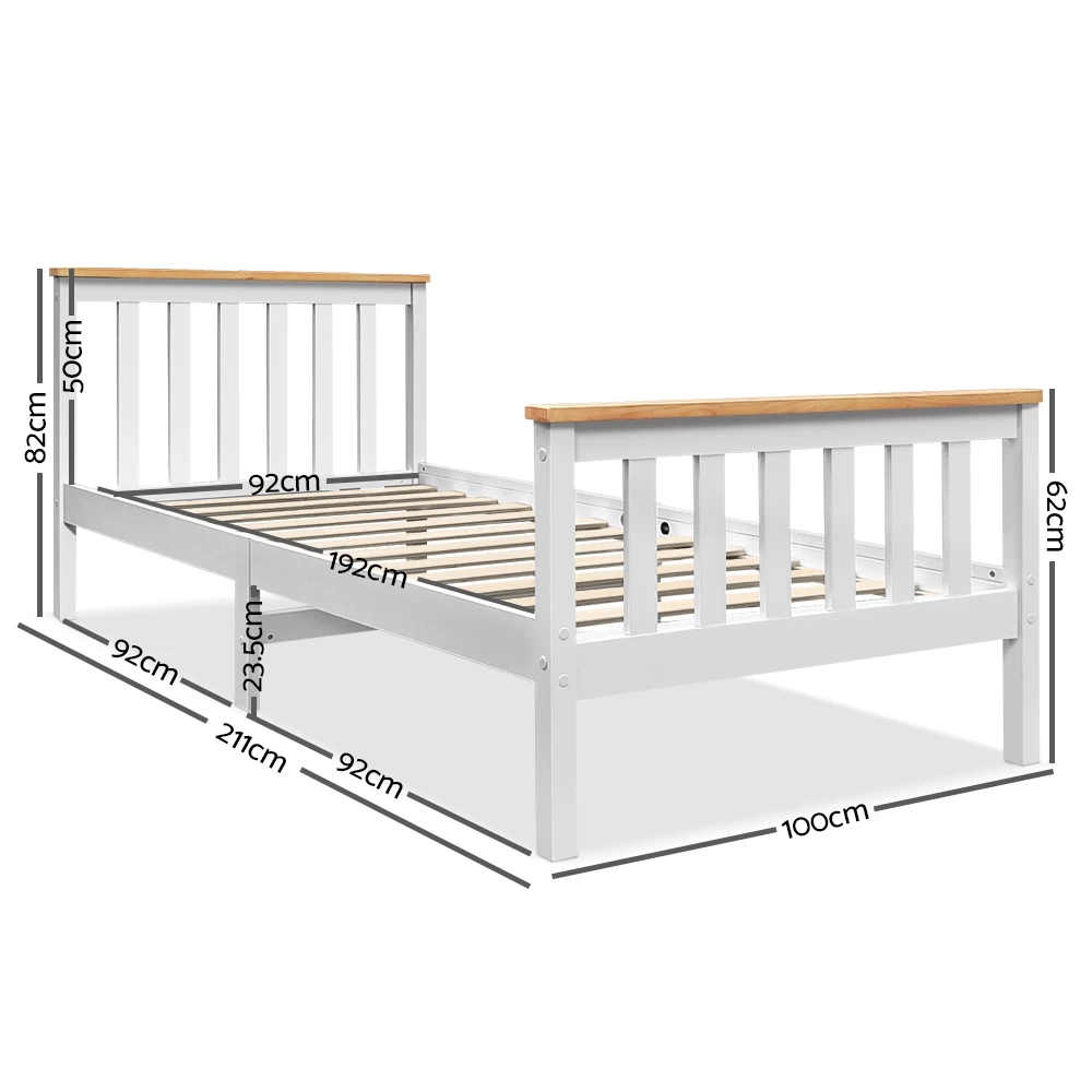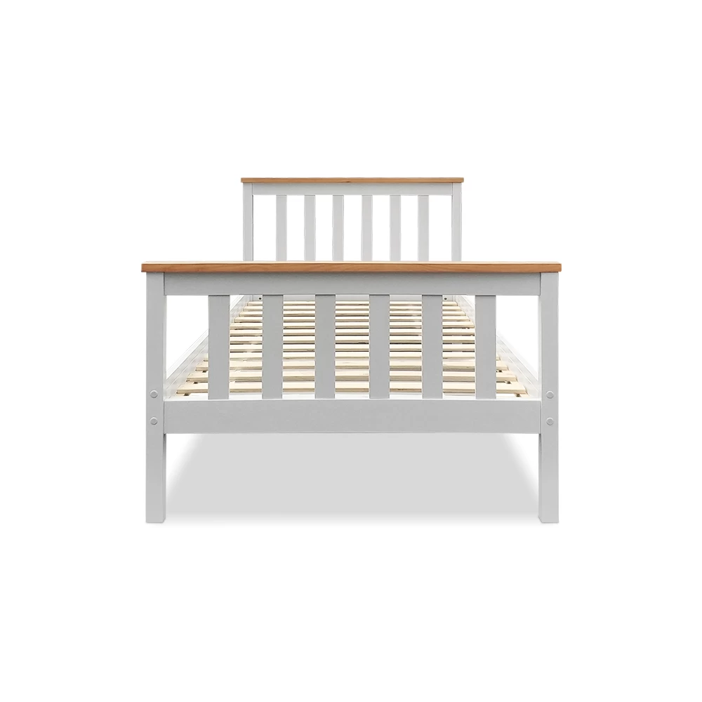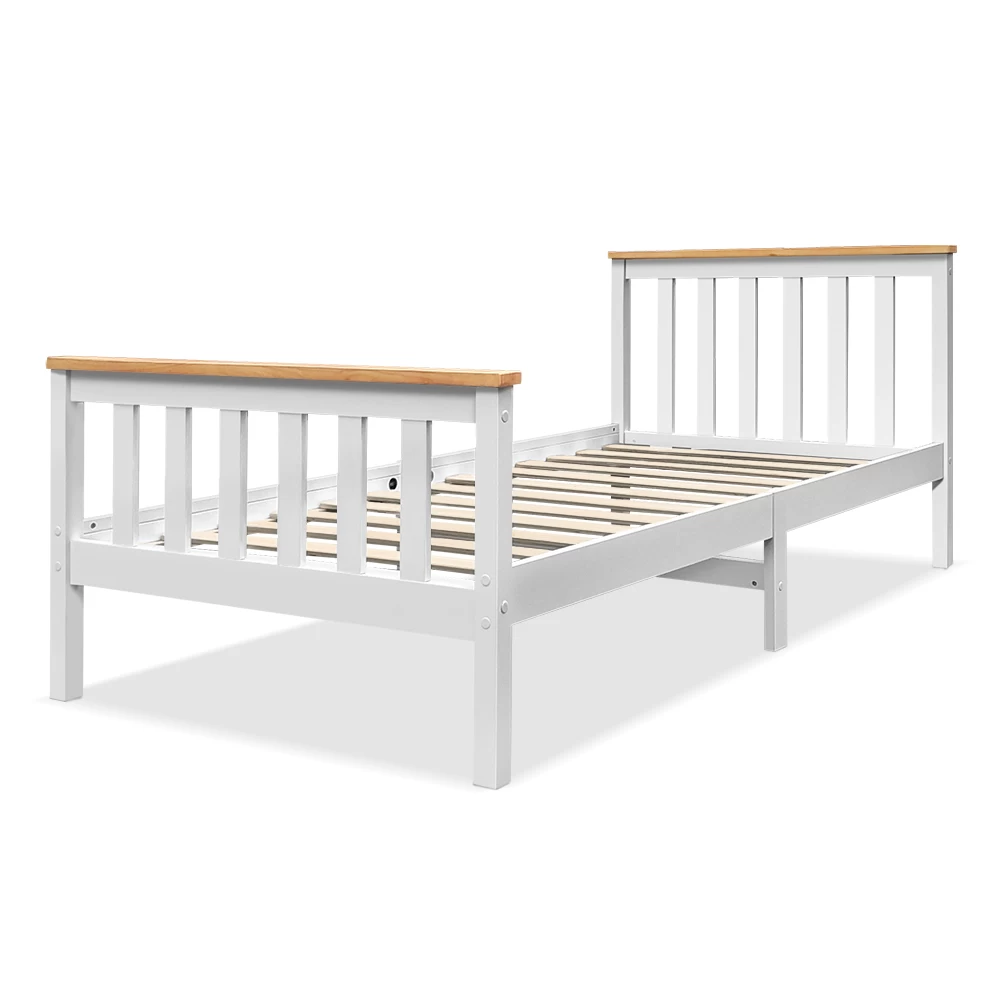 Featuring an exclusive classic design, our Pony Wooden Bed Frame is all about total simplicity with absolute practicality. Constructed of solid pine wood, the bed frame features quality plywood slats smooth finished edges, heavy-duty steel fixings and reinforced bracket support across the frame that cheaper alternatives do not provide. Not least, the two-tone colour adds an elegant and stylish look that will go well with any adult or children use.