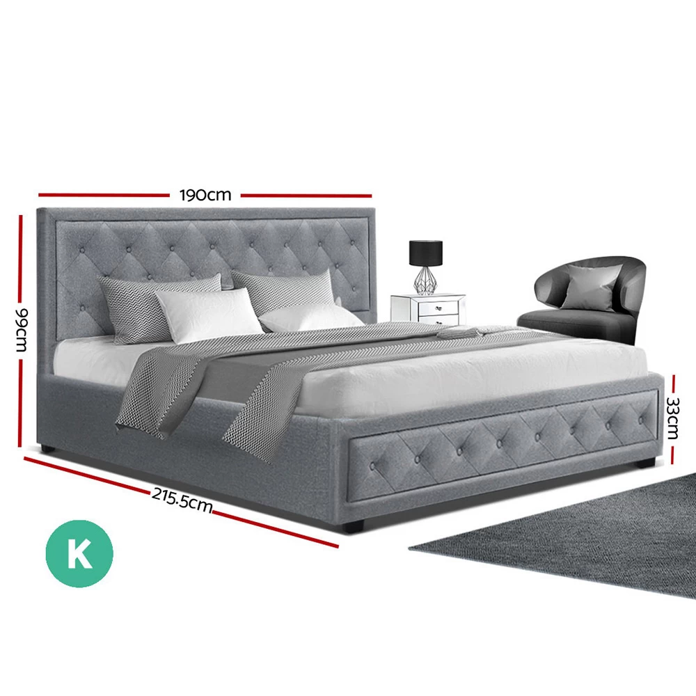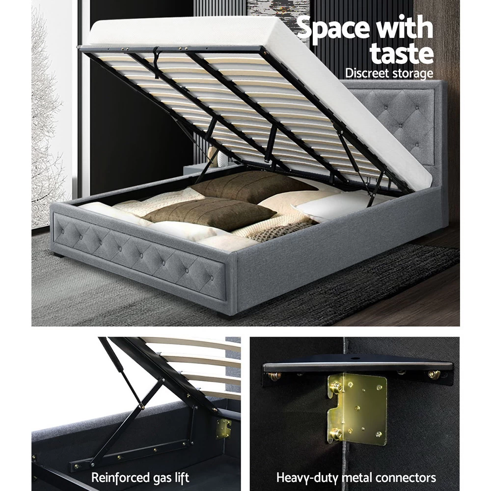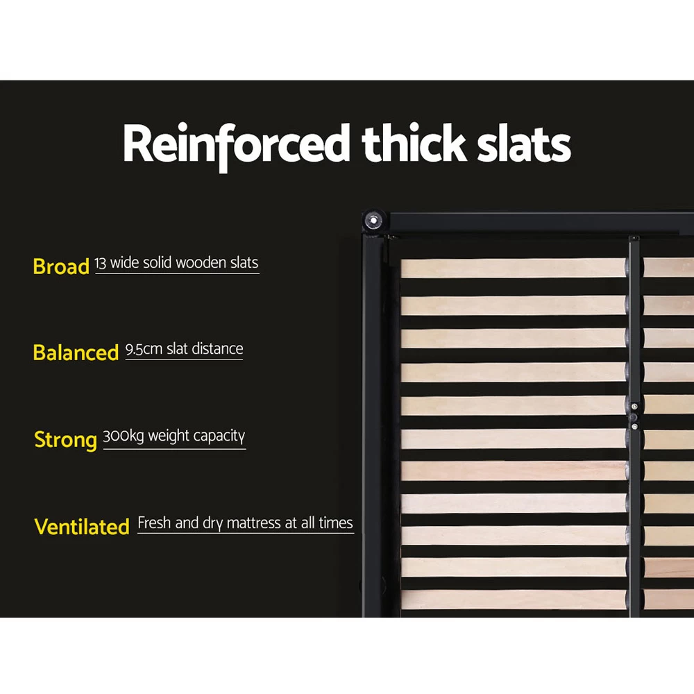 From the outside, our contemporary Artiss Tiyo Gas Lift Bed Frame looks absolutely plush. The premium PU leather tufted headboard and sides all exudes fine craftsmanship. But there is more to this luxurious bed frame than meets the eye. Lift up the frame and you will find acres of storage space under the wooden arched slat base. The gas lift system and hand strap enable you to effortlessly lift the bed to store all your seasonal beddings and linen such as extra quilts, pillows and comforters and more. The wooden arched slat base is also designed to flex appropriately so that it can better distribute the weight exerted on it. Overall, the bed frame is well-built with reinforced steel bars within its sturdy steel frame. Heavy-duty metal connectors keep the frame sturdy with additional central support from an adjustable centre support beam.