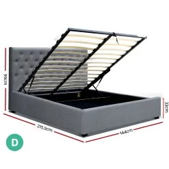Our Toki Gas-Lift Bed Frame combines exquisite style with great storage practicality. The frame is built with reinforced steel construction while the wooden arched slat frame helps to distribute weight evenly across the framework. Heavy-duty connectors are used throughout the frame to increase its durability and reliability with long -term robust use. And for an elegant finish, the bed frame is padded with high-density foam and upholstered with premium linen fabric. Best of all, the bed frame comes with a gas-lift storage system where you will find acres of space underneath the slatted frame to store all your bedroom and home essentials. And if so desired, the bed frame can be matched with our complementary bed head for a complete look. The bed frame is designed to fit standard Australian-sized mattress.