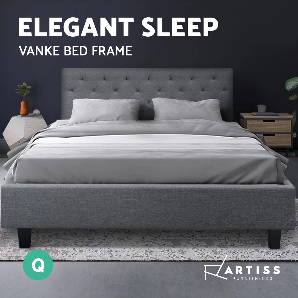 A good mattress certainly deserves an equally fine bed frame and base. And the Artiss Vanke Bed Frame is just the perfect companion piece for your favoured mattress. With its exquisite modern lines, elegant finish and quality linen fabric upholstery, the bed frame is well crafted with solid wood slats that help distribute body weight evenly throughout the ensemble. The high-density foam within the fabric delivers generous padding while the fabric itself is also breathable and non-woven for longevity of use. Underneath, sturdy legs with anti-slip floor protectors provide optimum support with further reinforcement supplied by metal side legs. Not least, heavy-duty metal connectors help keep the structure stable and firm even with robust use.