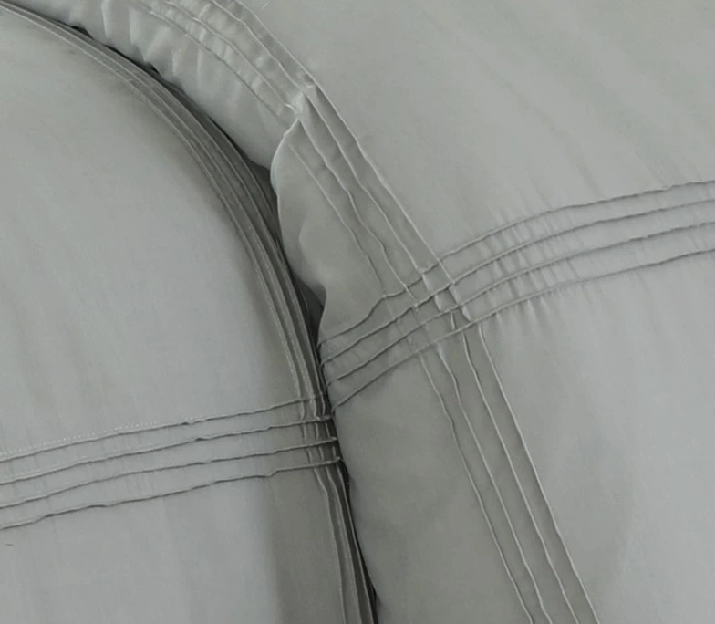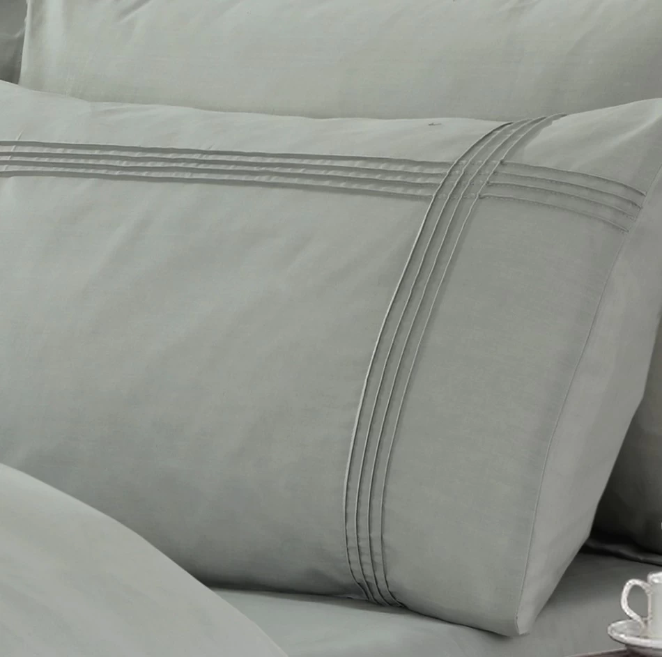 Give your bedroom a natural, clean look with this luxurious pintuck quilt cover set from Anfora. Made from cotton rich fabric, this silver grey quilt cover set features multiple parallel and vertical narrow tucks on both quilt cover and pillowcases.