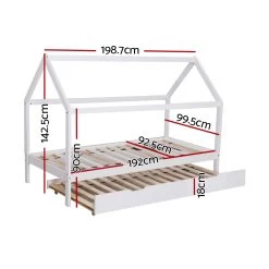 Artiss Wooden Bed Frame Single Size Trundle Mattress Base Timber Platform Pine Wood White