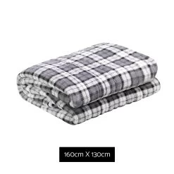 Giselle Bedding Electric Throw Rug Flannel Snuggle Blanket Washable Heated Grey And White Checkered