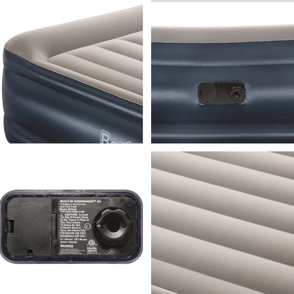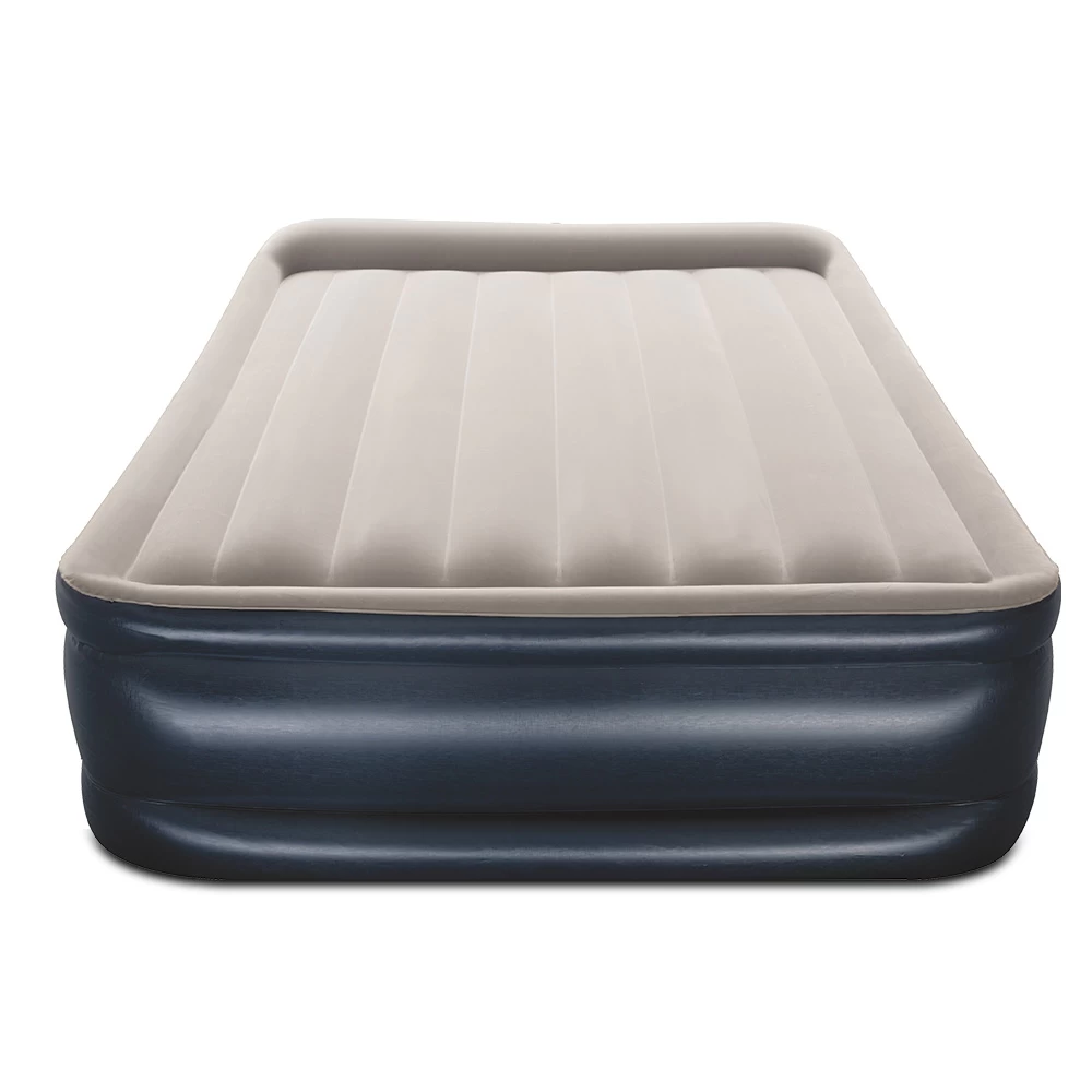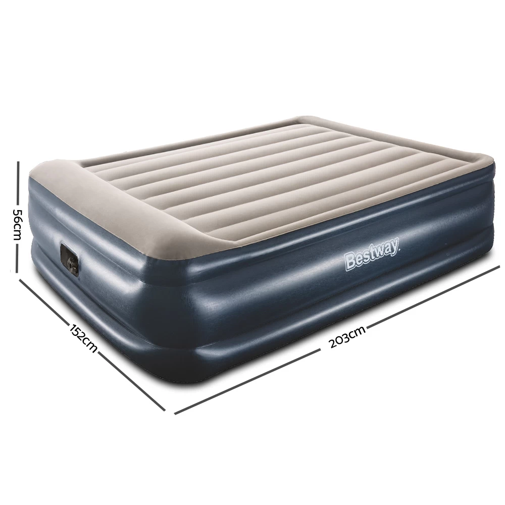 Featuring a comfortable flocked sleeping surface, the Queen size air bed provides a smooth and comfy sleep each and every night. Combined with a sturdy coil-beam construction and built-in electric pump, this quality air bed is suitable for both indoor and outdoor use. Inflates in just a minute plus, you will have an instant bed ready to go whenever the situation calls for a spare mattress. Portable, easy to store and effortless to set up, this convenient air mattress provides the perfect balance of comfort, practicality and affordability.