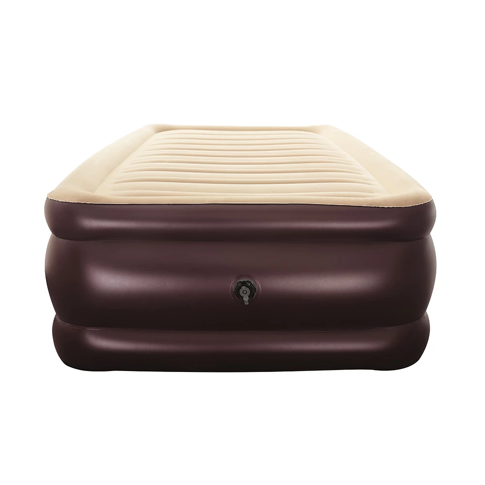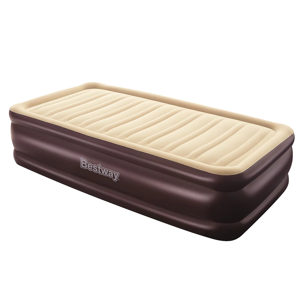 Featuring a comfortable flocked sleeping surface, the single size air bed provides a smooth and comfy sleep each and every night. Designed with a sturdy I-beam construction, this quality air bed is suitable for both indoor and outdoor use. Inflates in just 300 seconds, You will have an instant bed ready to go whenever the situation calls for a spare mattress. Portable, easy to store and effortless to set up, this convenient air mattress provides the perfect balance of comfort, practicality and affordability.