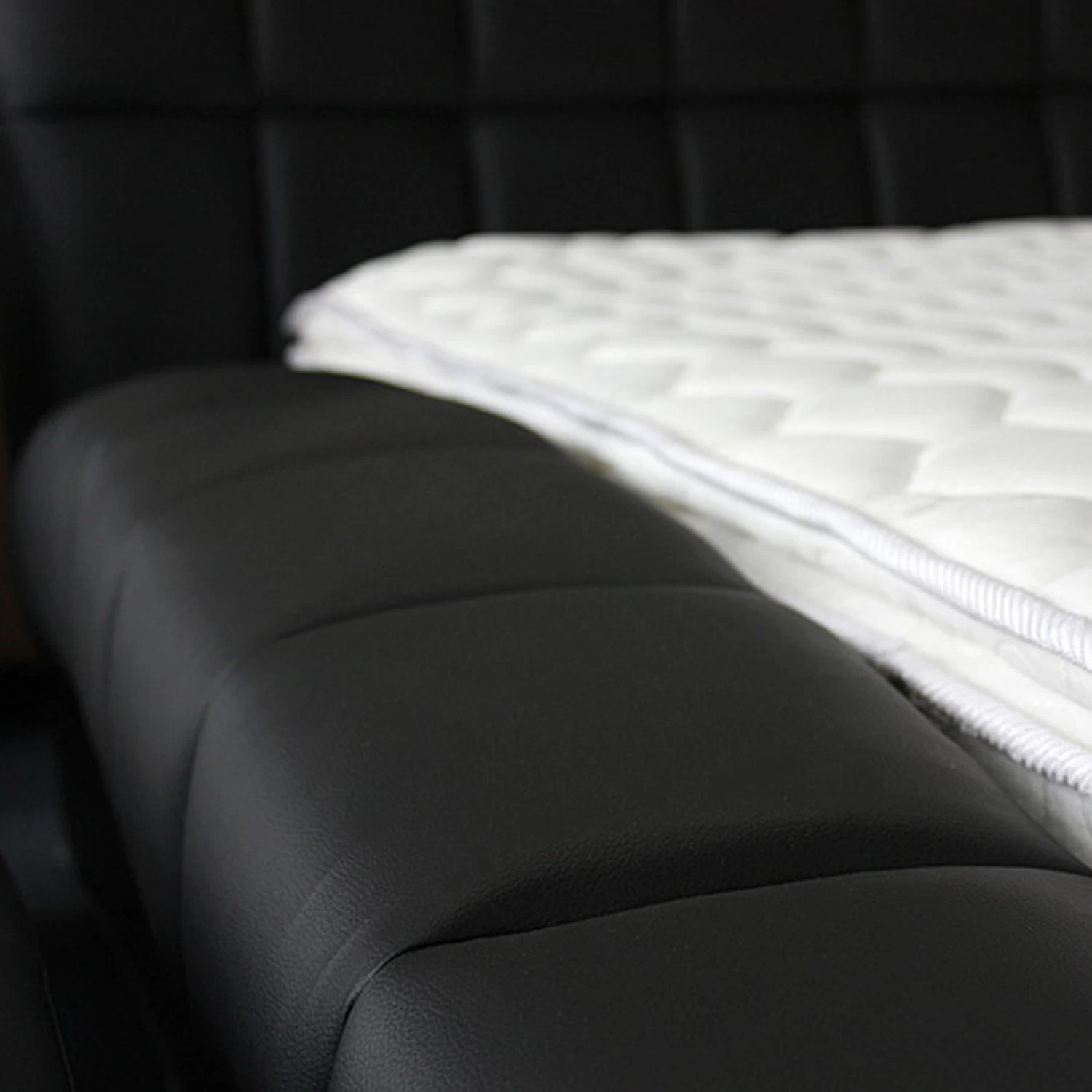 This stylish black bed is fully upholstered with high quality leatherette and very comfortable foam inside it. It presents a trendy look with seamed grid pattern on it. Its finely polished black leatherette cover defines its class and grandeur.