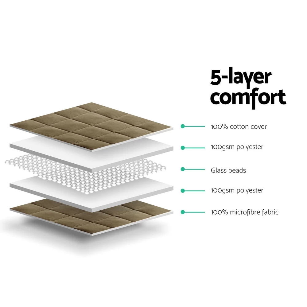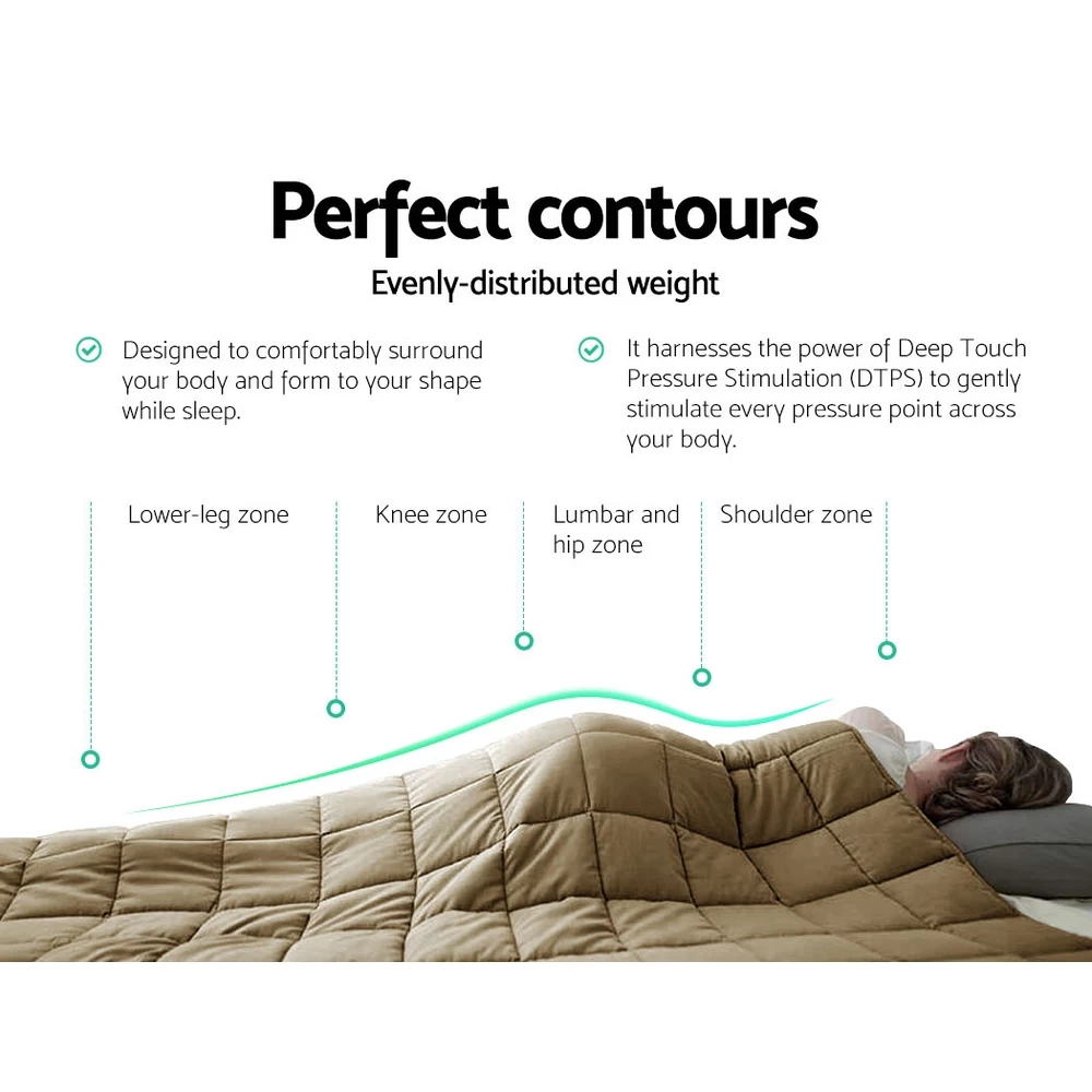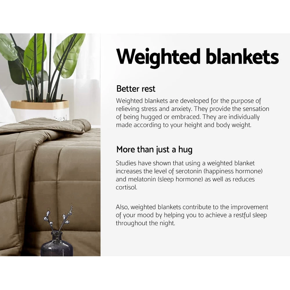 The science behind better sleep lies with a Giselle Bedding Weighted Blanket. It uses the therapeutic power of Deep Touch Pressure Simulation (DTPS) to stimulate pressure points throughout the body, thereby contributing to enhanced sleep, mood and relaxation. Our weighted blanket is engineered to be between 8% and 15% of your body weight to relax the nervous system by simulating the feeling of being hugged or held. This boosts serotonin and melatonin levels and decreases cortisol levels improving your heart rate and blood pressure. In short, you get healthier sleep and awake feeling refershed and re-invigorated. Made of 100% cotton for the top and 100% microfibre for the bottom, the weighted blanket is filled with polyester and glass beads to create the right amount of pressure for a soothing hugging sensation. The weighted blanket is also close-fitting and conforms to your body shape and adapts to any sleeping posture easily. Not least, its excellent leak-proof stitching and 5-layer comfort ensures that the weighted blanket is ever so durable and comfortable with every use. The weighted blanket is machine washable for total convenience.