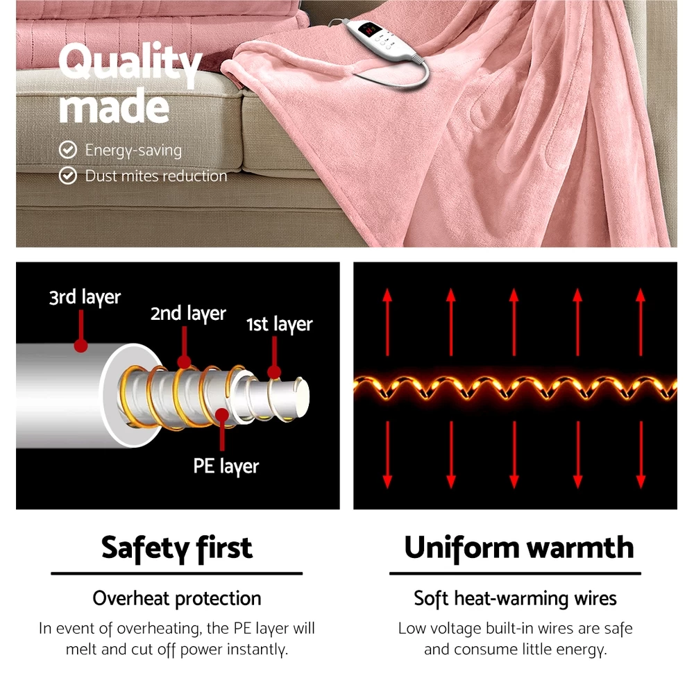 Snuggle up in our Giselle Bedding Electric Throw Rug while on your sofa or couch and we guarantee you will love that warm and cosy feeling instantly. Made of lightweight and super-soft high-density coral fleece, our electric throw rug is just the thing to help you cut down on those costly heating bills and yet enjoy the heat up close. Perfect for both indoor and outdoor use, the electric throw rug has all the attributes of our electric blanket with up to nine temperature settings, a 9-hr timer, overheat protection and a detachable controller with LED display. It is also machine washable for a clean rug time and again.
