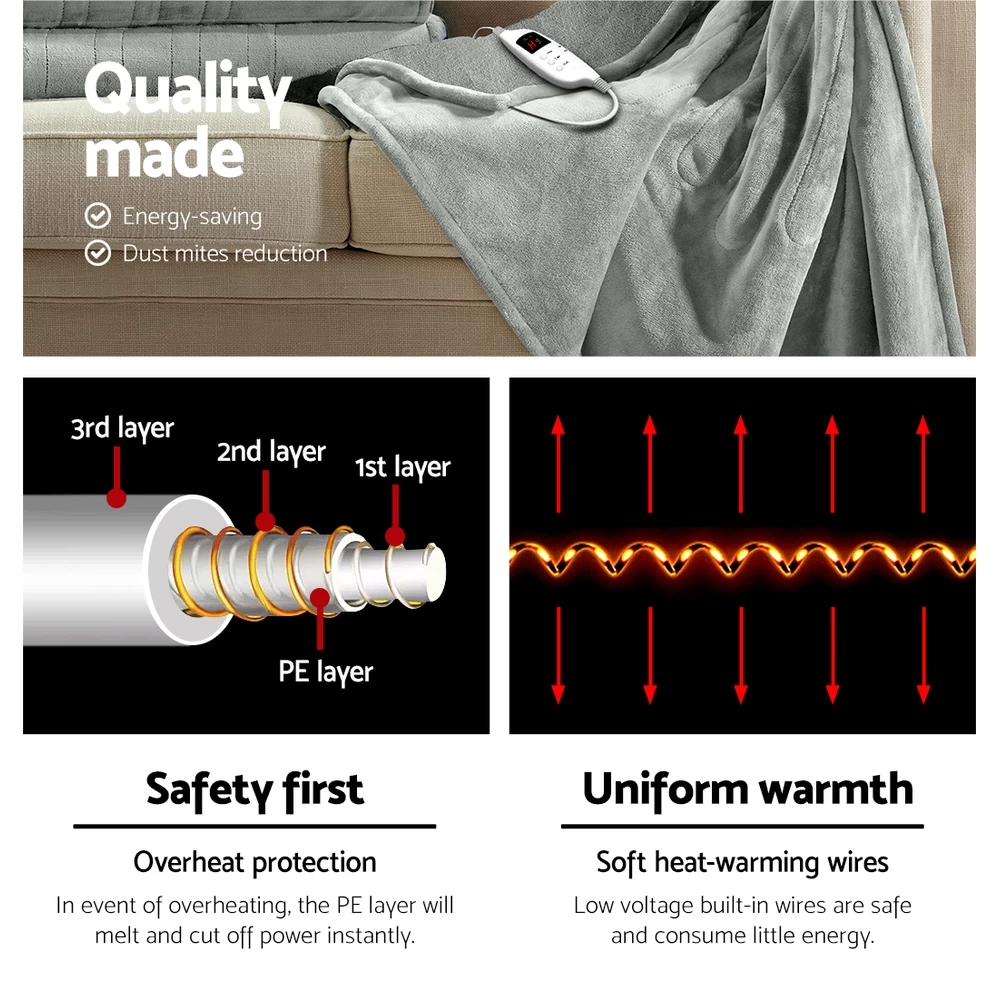 Snuggle up in our Giselle Bedding Electric Throw Rug while on your sofa or couch and we guarantee you will love that warm and cosy feeling instantly. Made of lightweight and super-soft high-density coral fleece, our electric throw rug is just the thing to help you cut down on those costly heating bills and yet enjoy the heat up close. Perfect for both indoor and outdoor use, the electric throw rug has all the attributes of our electric blanket with up to nine temperature settings, a 9-hr timer, overheat protection and a detachable controller with LED display. It is also machine washable for a clean rug time and again.