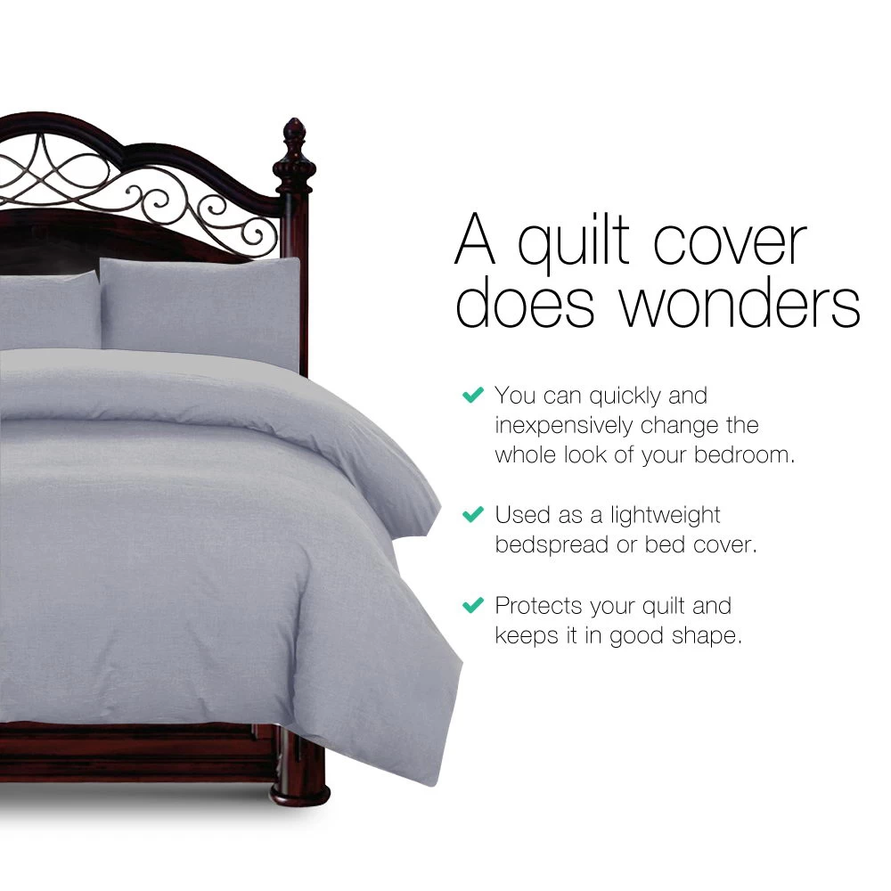 Comprising two pillows and a quilt cover, the three-piece bedding set is highly breathable and lightweight as well as skin-friendly and soft for ultimate comfort. More importantly, it gives the protection you need to keep your quilt clean and durable. Not least, both pillow cases and cover are machine washable and easy to clean and maintain.