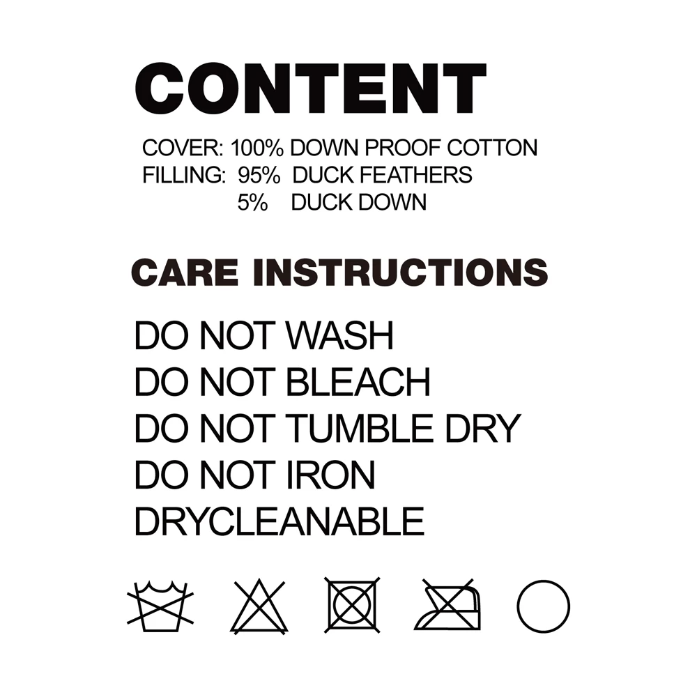 * Filling: 95% white duck feather, 5% white duck down