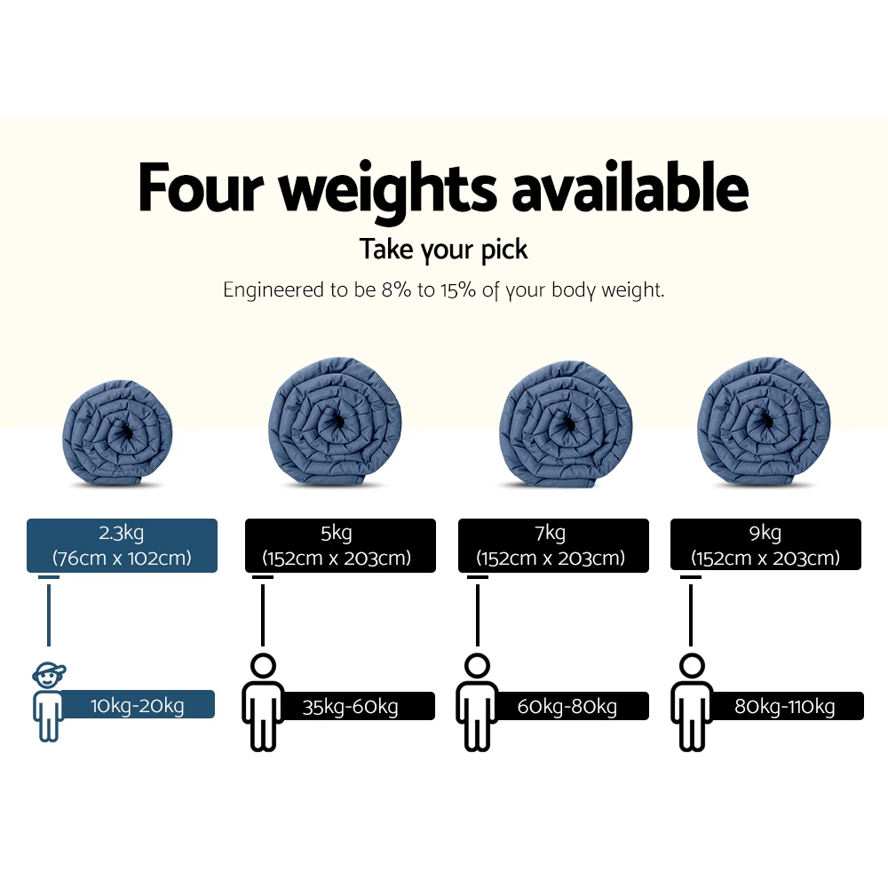 The science behind better sleep lies with our Giselle Bedding Cooling Weighted Blanket. It uses the therapeutic power of Deep Touch Pressure Stimulation (DTPS) to stimulate pressure points throughout the body, thereby contributing to enhanced sleep, mood and relaxation. Our weighted blanket is engineered to be between 8% and 15% of your body weight to relax the nervous system by simulating the feeling of being hugged or held. This boosts serotonin and melatonin levels and decreases cortisol levels improving your heart rate and blood pressure. In short, you get healthier sleep and awake feeling refreshed and re-invigorated. And you can continue enjoy sleeping tight with a weighted blanket during hot nights without getting overheated, as the cool touch surface layer keeps you cool throughout. Perfect for the summer ahead. Made of 100% microfibre, the weighted blanket is filled with polyester and glass beads to create the right amount of pressure for a soothing hugging sensation. The weighted blanket is also close-fitting and conforms to your body shape and adapts to any sleeping posture easily. Not least, its excellent leak-proof stitching and 5-layer comfort ensures that the weighted blanket is ever so durable and comfortable with every use. The weighted blanket is machine washable for total convenience.