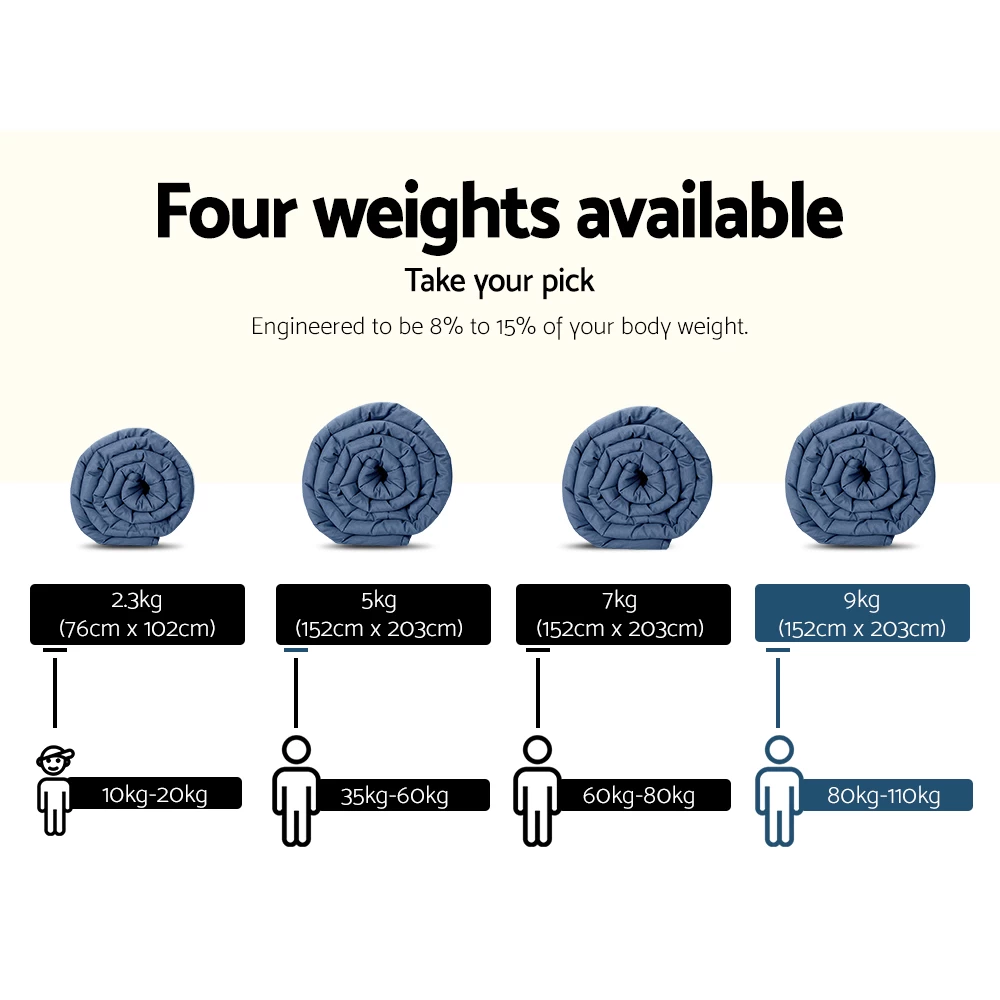 The science behind better sleep lies with our Giselle Bedding Cooling Weighted Blanket. It uses the therapeutic power of Deep Touch Pressure Stimulation (DTPS) to stimulate pressure points throughout the body, thereby contributing to enhanced sleep, mood and relaxation. Our weighted blanket is engineered to be between 8% and 15% of your body weight to relax the nervous system by simulating the feeling of being hugged or held. This boosts serotonin and melatonin levels and decreases cortisol levels improving your heart rate and blood pressure. In short, you get healthier sleep and awake feeling refreshed and re-invigorated. And you can continue enjoy sleeping tight with a weighted blanket during hot nights without getting overheated, as the cool touch surface layer keeps you cool throughout. Perfect for the summer ahead. Made of 100% microfibre, the weighted blanket is filled with polyester and glass beads to create the right amount of pressure for a soothing hugging sensation. The weighted blanket is also close-fitting and conforms to your body shape and adapts to any sleeping posture easily. Not least, its excellent leak-proof stitching and 5-layer comfort ensures that the weighted blanket is ever so durable and comfortable with every use. The weighted blanket is machine washable for total convenience.