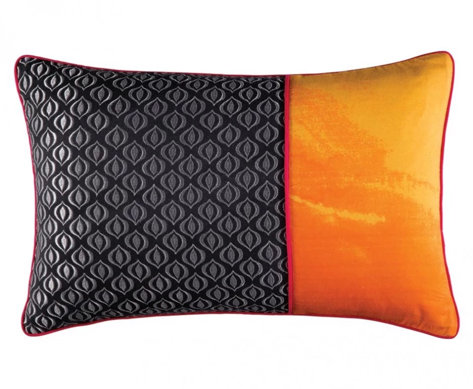 bright sunrise or muted grey your pick. the dynamically different printed front and embroidered reverse design on gravis, makes this a versatile cushion for any space or mood.