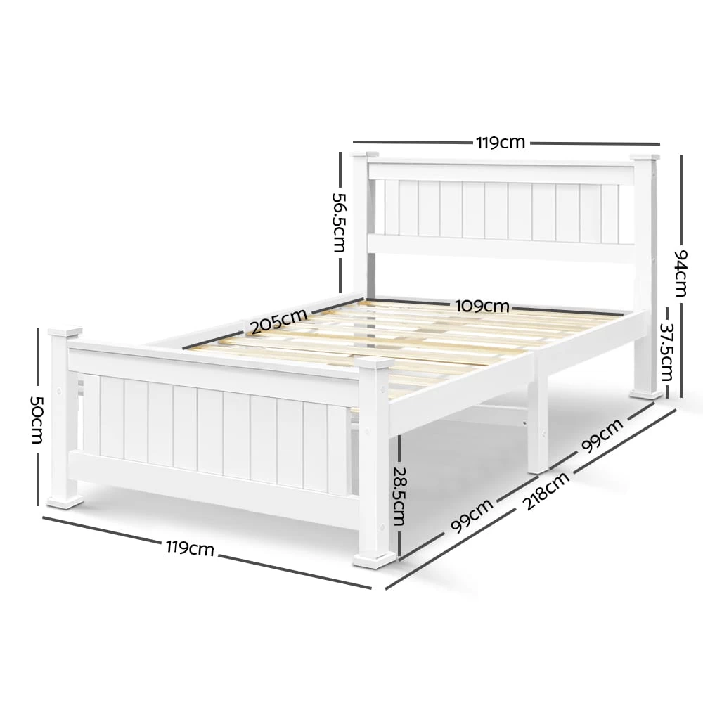 King Single Wooden Bed Frame – White