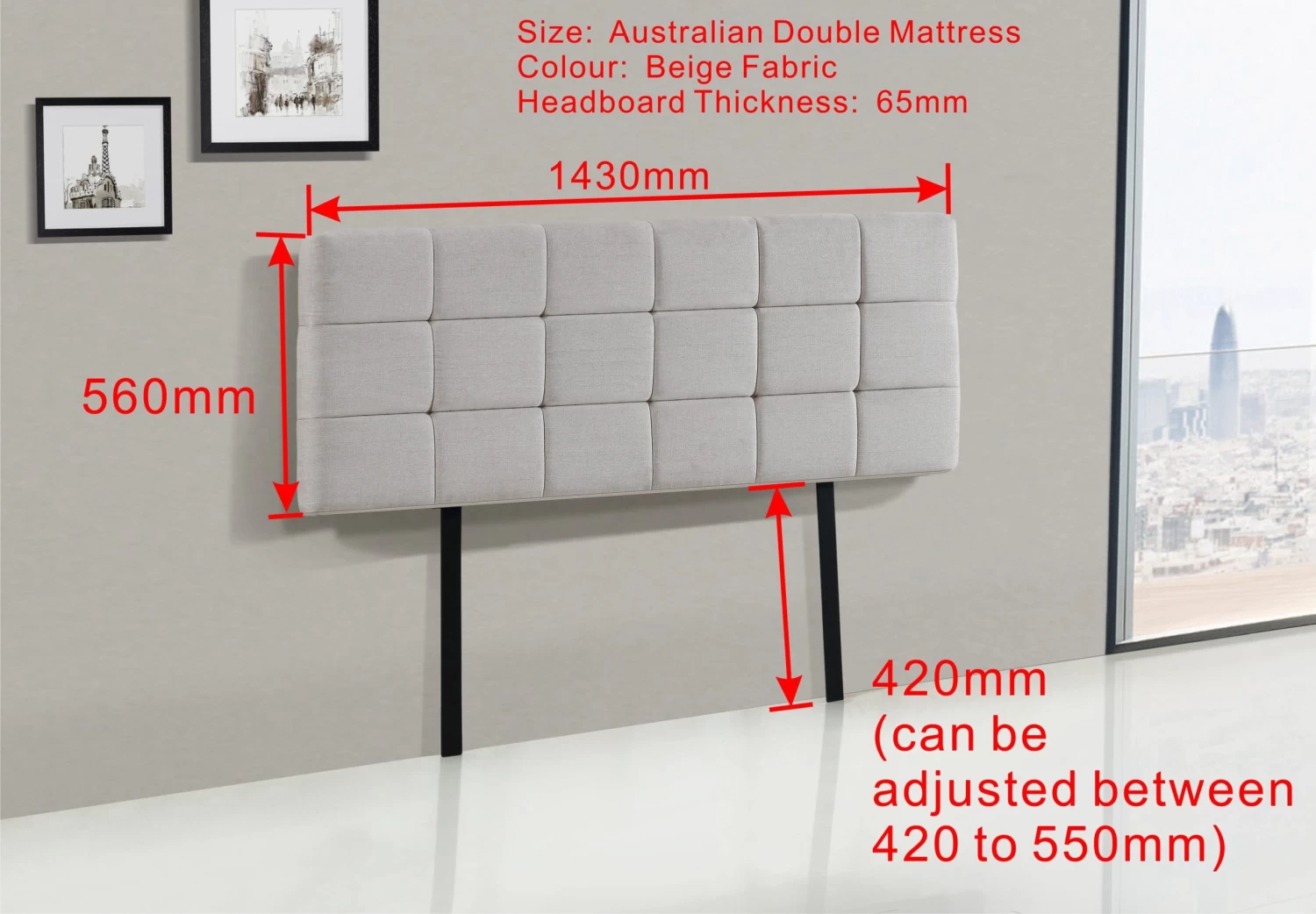 This headboard for standard Double-sized bed frames is created with quality materials, including easy-to-maintain Linen Fabric that will maintain its sophisticated look for many years to come. This particular model comes with elegant stitching accents that provide just the right level of understated pop. A neutral beige will blend seamlessly with a wide variety of bed frames and other bedroom furniture.