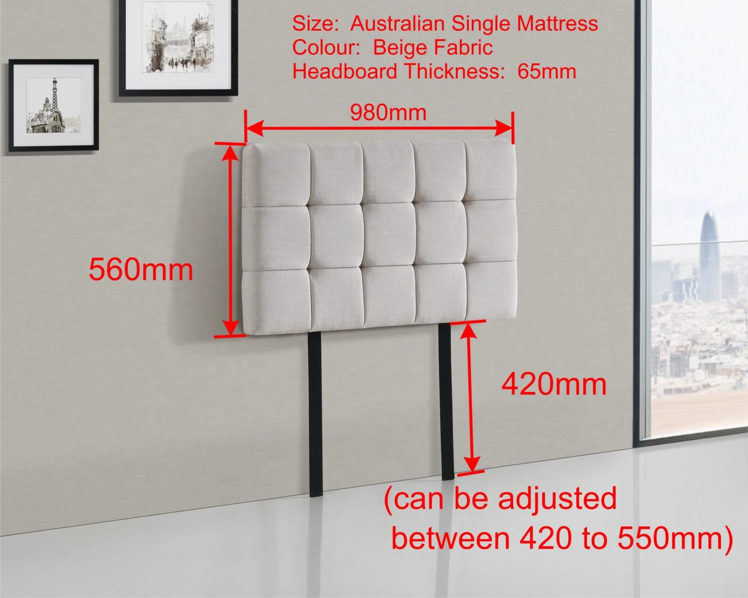 *Dimensions of Headboard: 980 x 560 x 65mm (L x H x W)