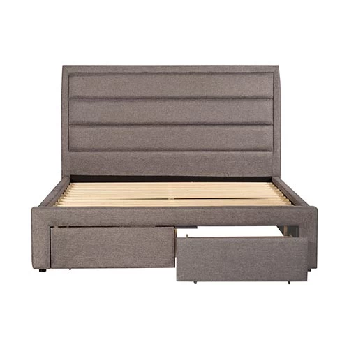 1x Megan Bed Fabric Light Grey King size With Storage Drawers