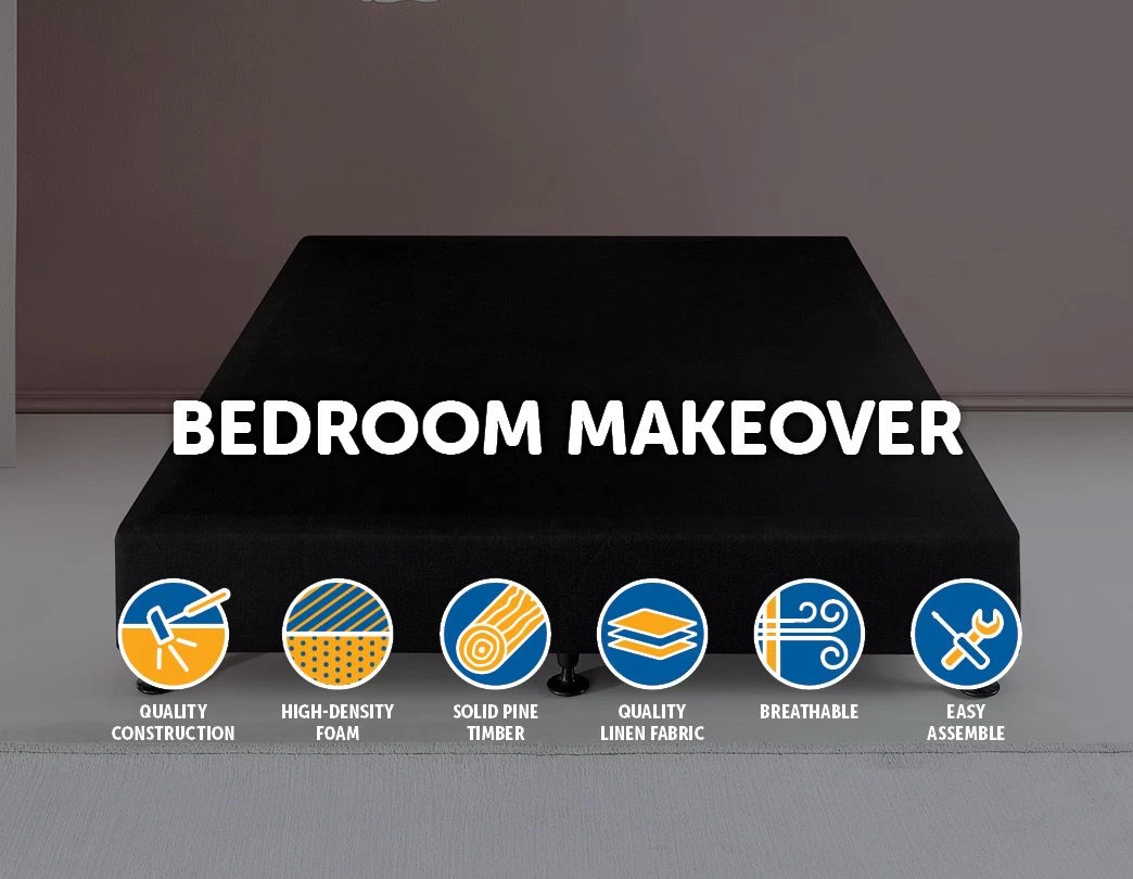 1 x Palermo Queen Ensemble Bed Base Midnight Black Linen Fabric
