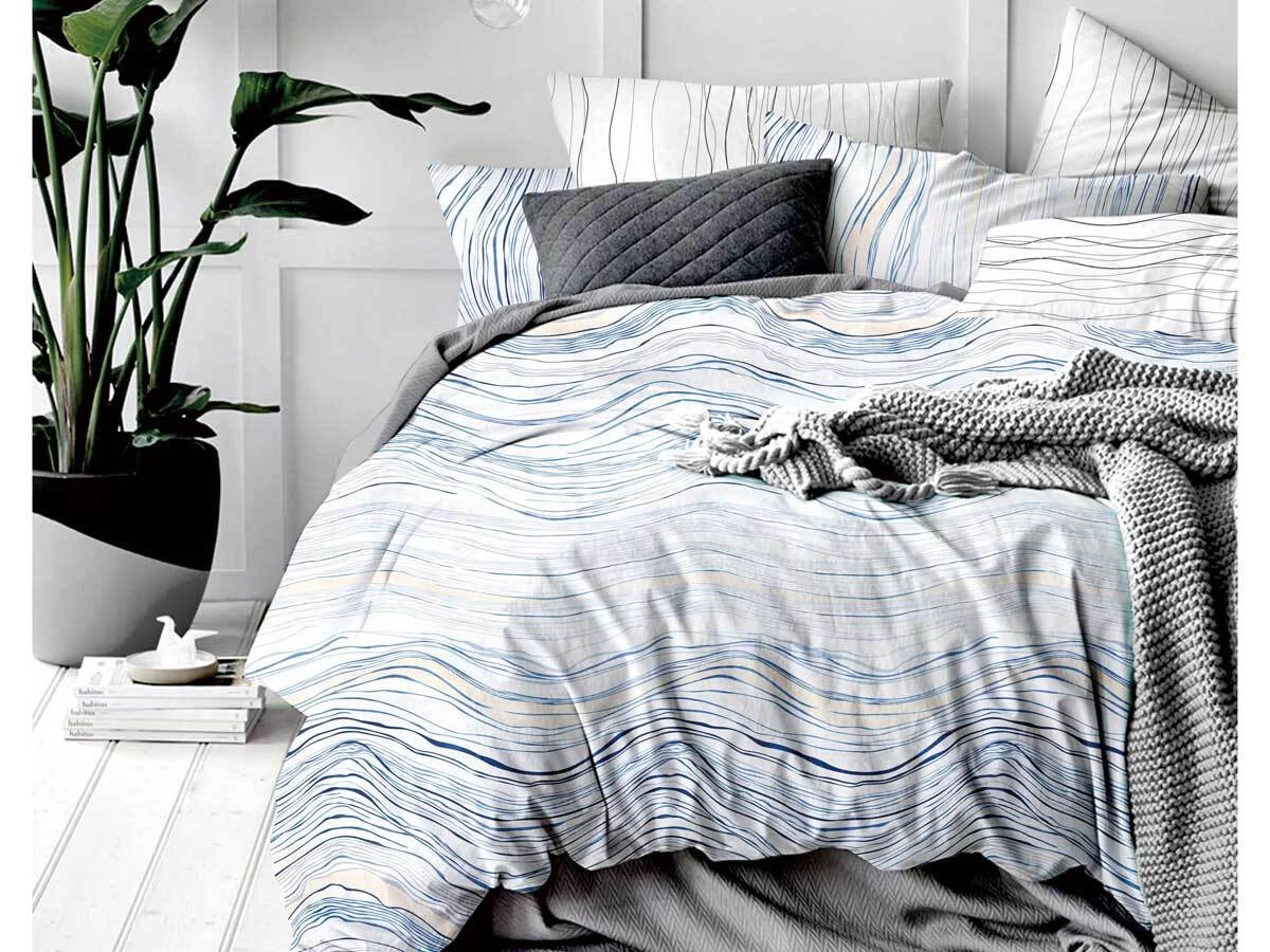 Kendal Quilt Cover Set/Doona Cover Set from Luxton Print Collection. It features an increditable design of modern curve with colours of brown, blue, black and white mixed for a classic look and feel. Offering a cosy and natural style of your bedroom.