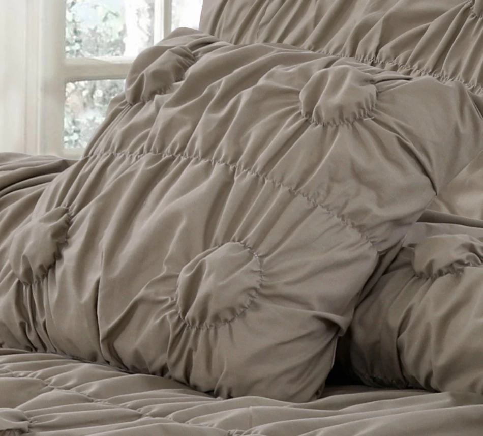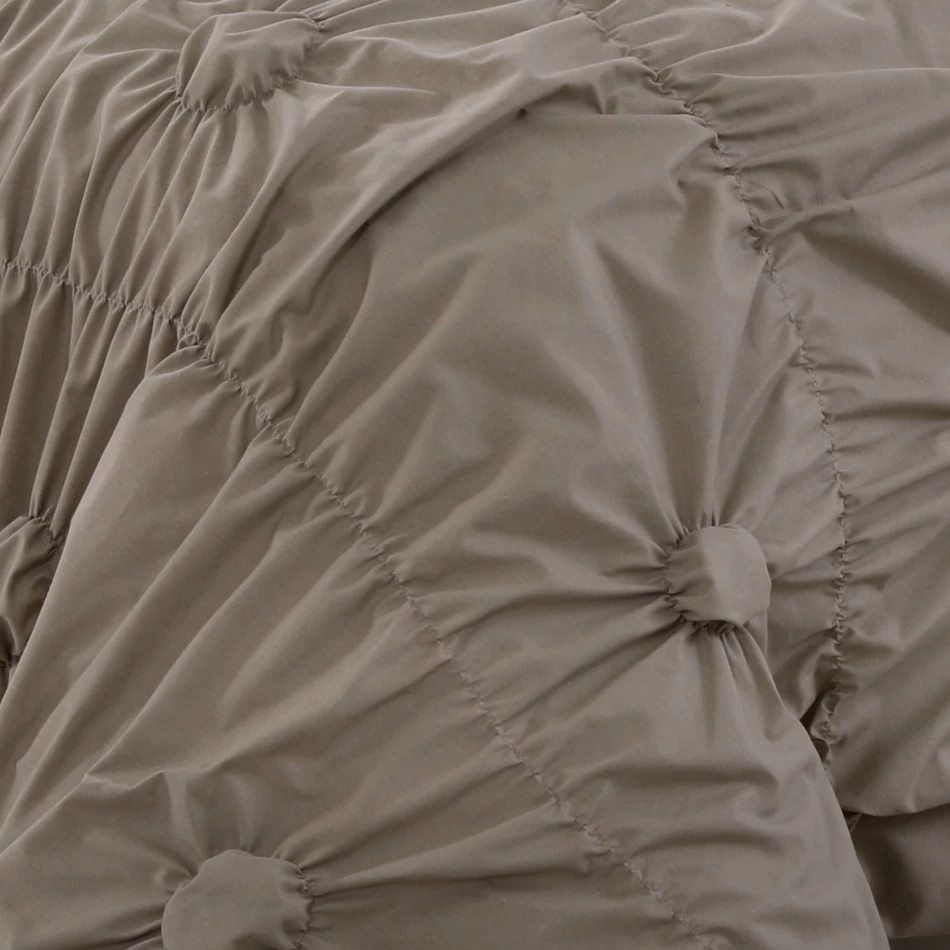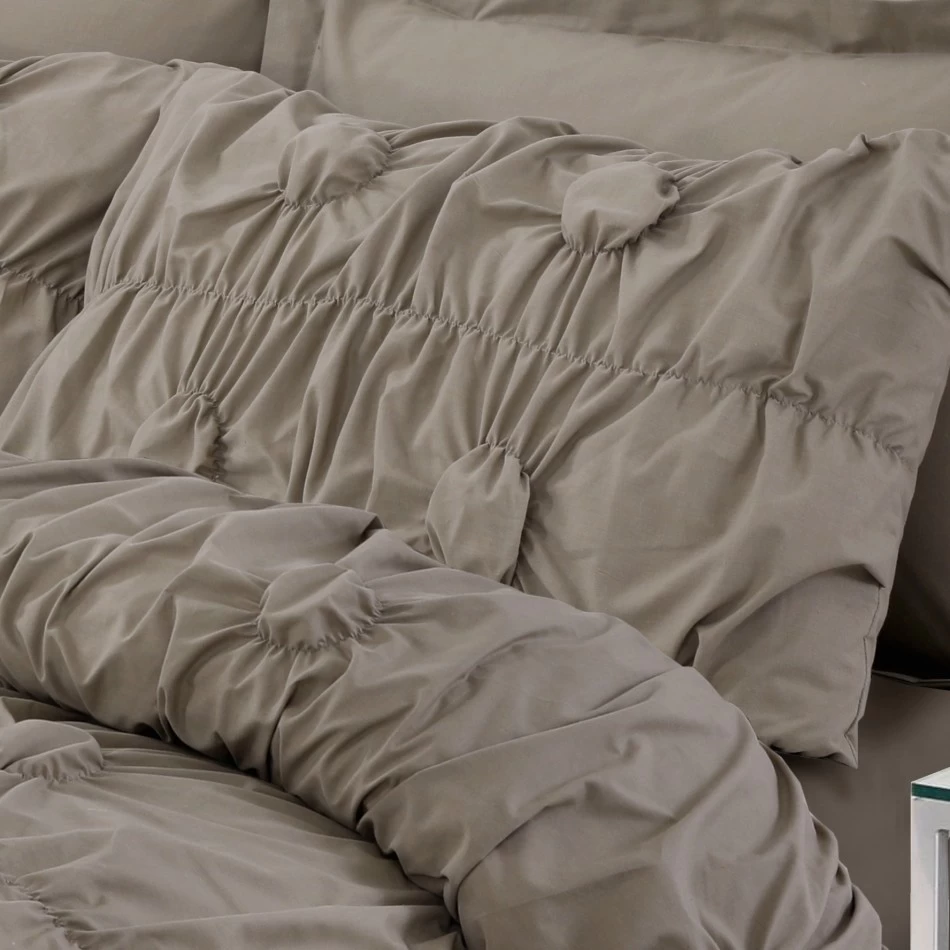 The exquisite pintuck detailing of this quilt cover set creates a voluminous, textured look. Made with cotton rich fabric, it boasts the softness of cotton combined with the durability of polyester. Its ultra modern look will transform your bed into a plush retreat.