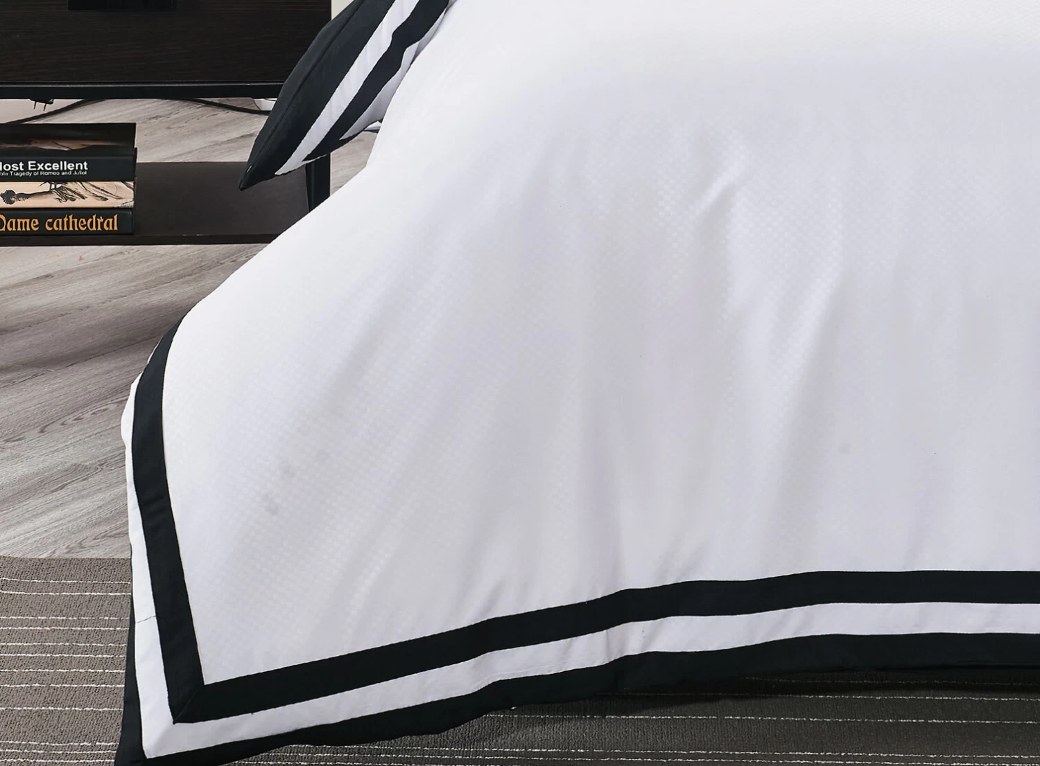 This quilt cover design features an outstanding contrast of charcoal and white square patterns that will give your bedroom an air of sophistication and elegance. Its classic colours and design will ensure it never goes out of date, and is suitable year round. Made of microfibre.