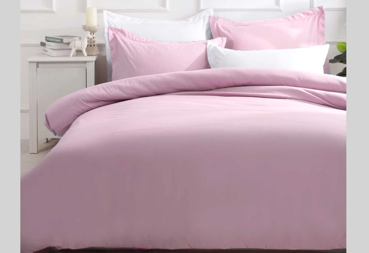 Pure pink color quilt cover set. Made of high-quality microfiber construction will stand up to the test of time.